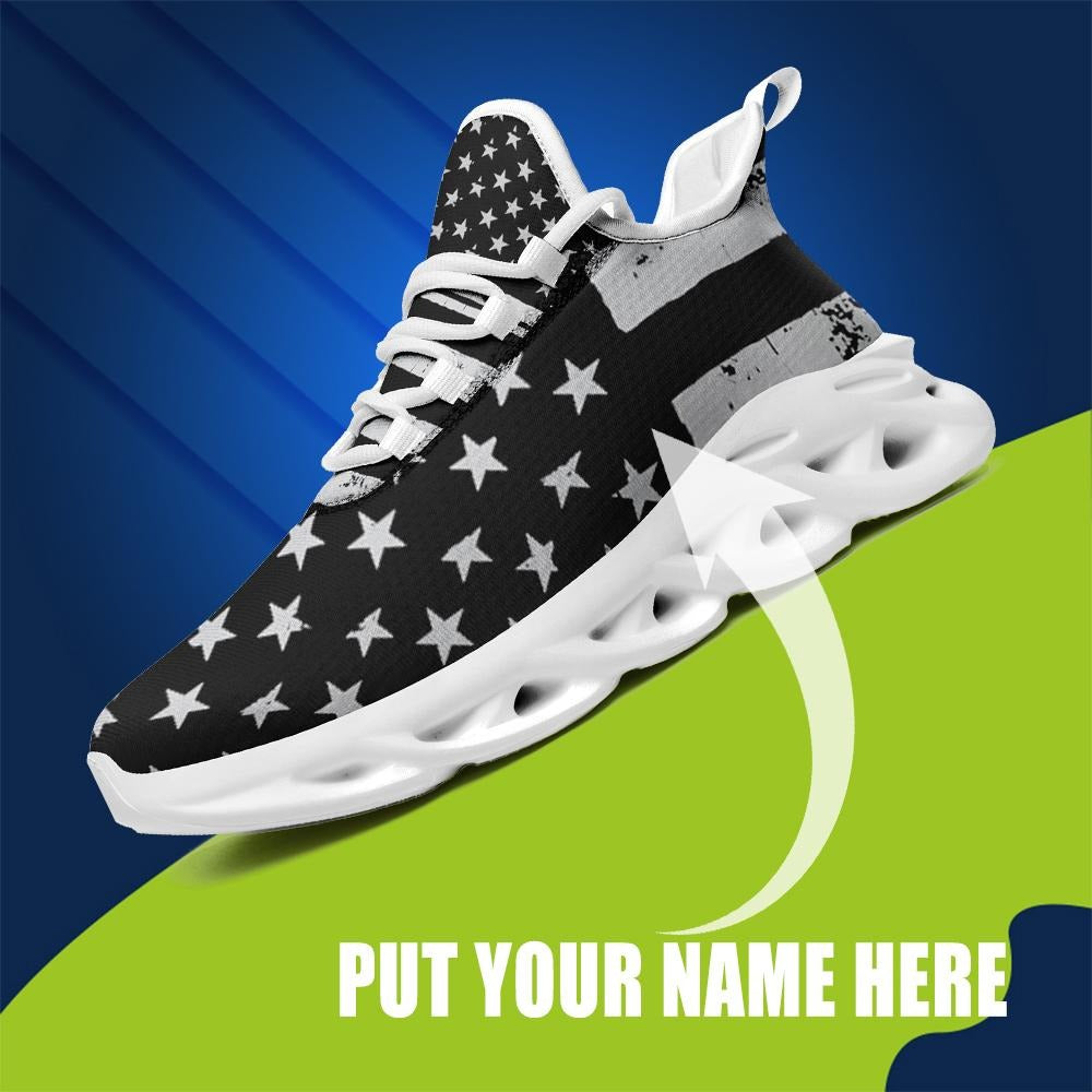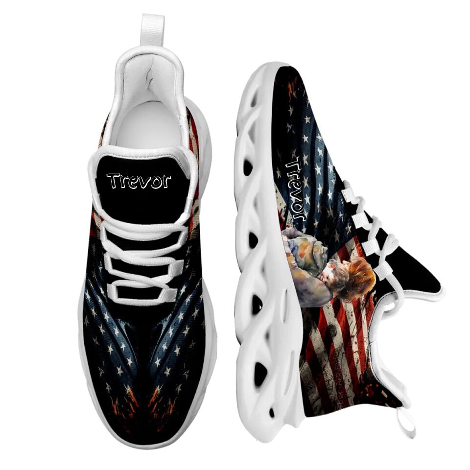 Custom American Flag Max Soul Sneakers | Patriotic USA Running Shoes with Personalized Name or Logo | Gift for Veterans & Independence Day