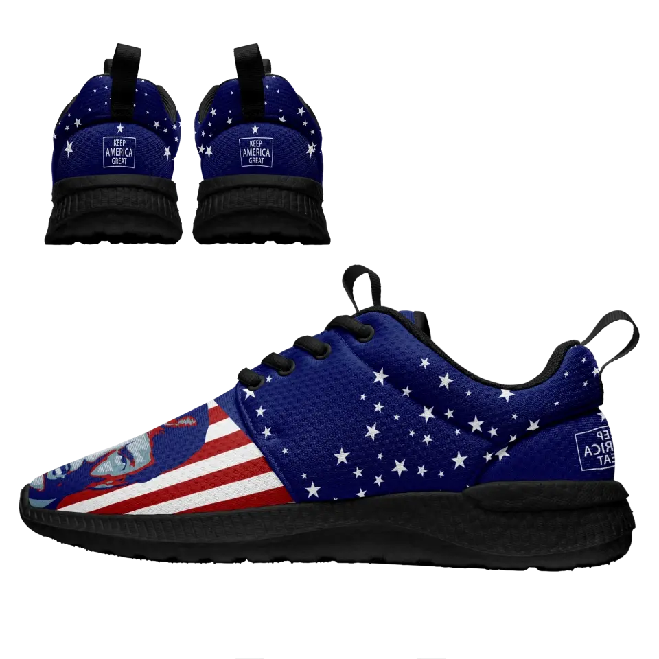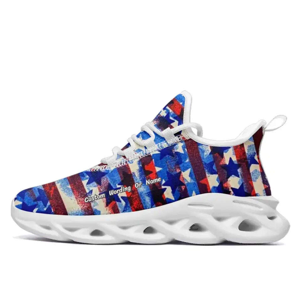 Custom Patriotic American Flag Fashion Sneakers | Personalized USA Flag Running Shoes with Name, Logo | Gift For Sneaker Lover | MaxSoul-B03001