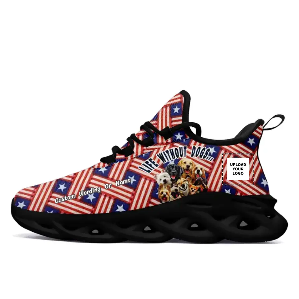 Custom American Flag Sneakers with Personalized Name, Logo | USA Patriotic Athletic Shoes | Corporate, Business, independence day Gift | MaxSoul-B03008