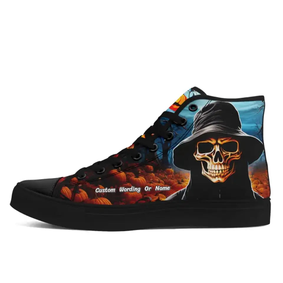 Gift Ideas,Personalized Halloween Sneakers, Custom Skull Shoes, Pumpkin High-Top Shoes