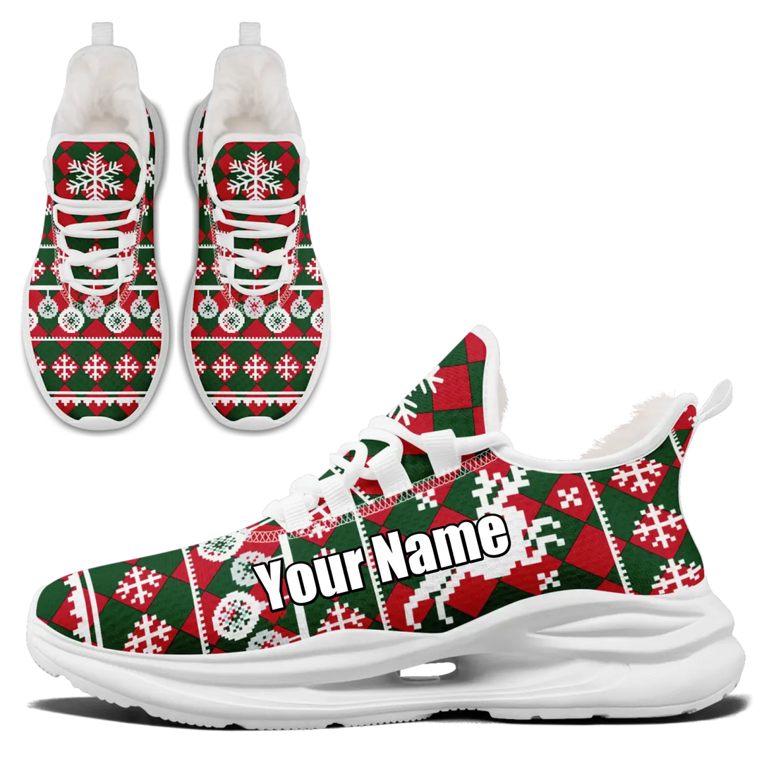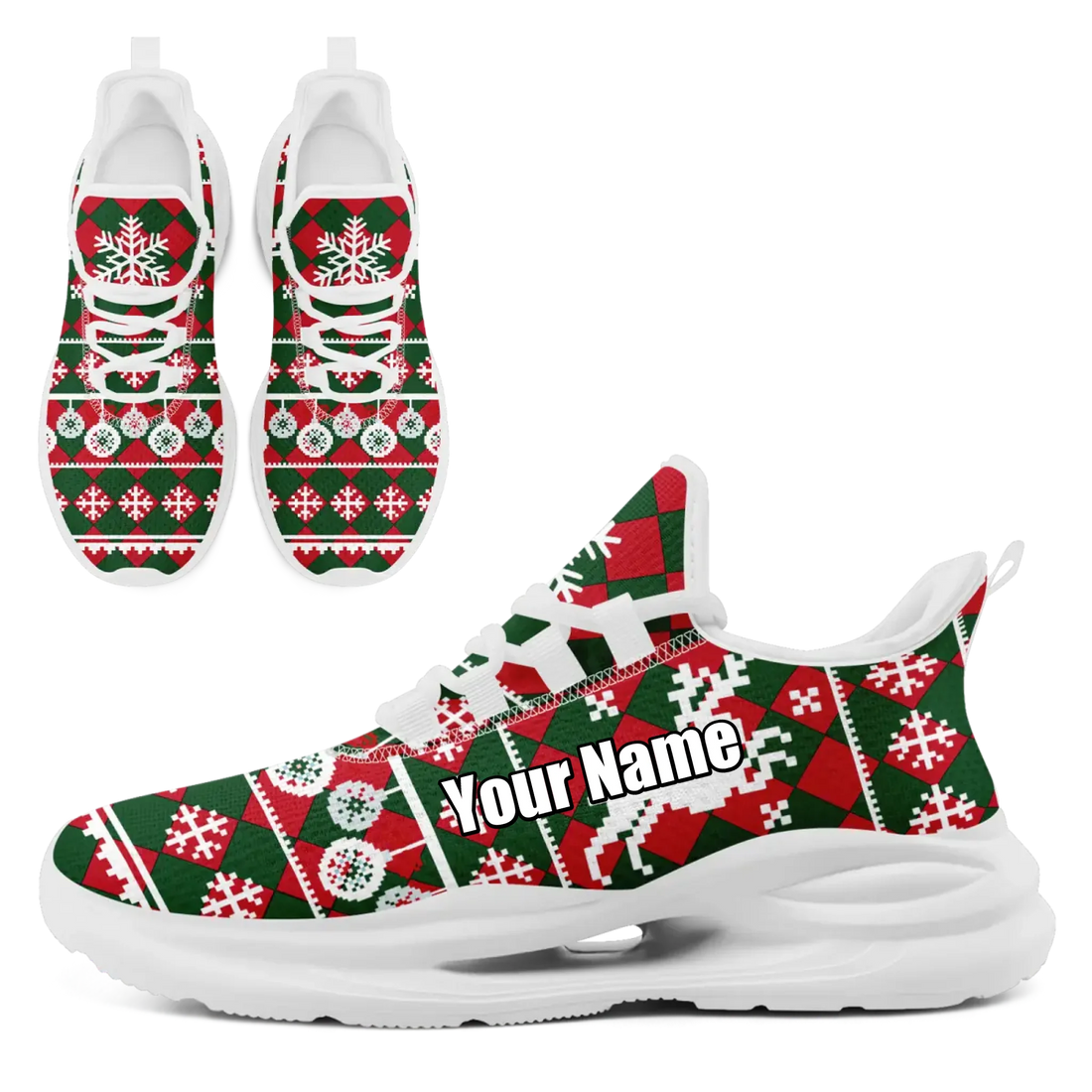 Festive Ugly Sweater Style Athletic Sneakers, Holiday Knit Pattern Christmas Trainers FN079-25018040