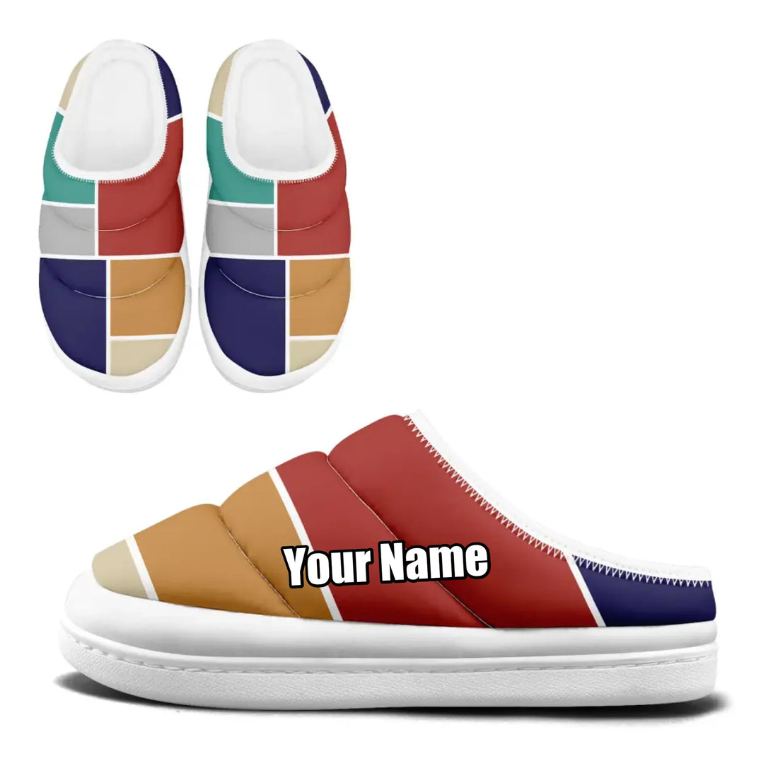 Modern Color Block Padded Winter Slippers, Cozy Minimalist Style Christmas Holiday Gift FN057-25009060