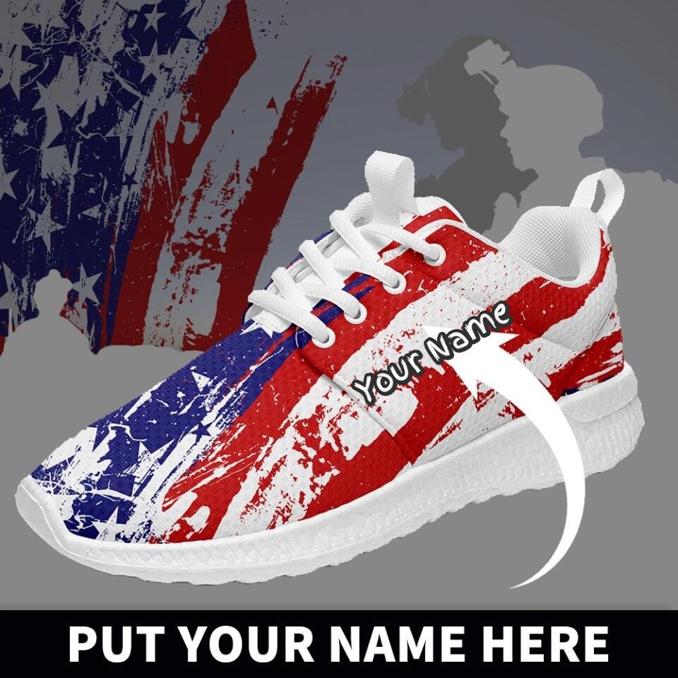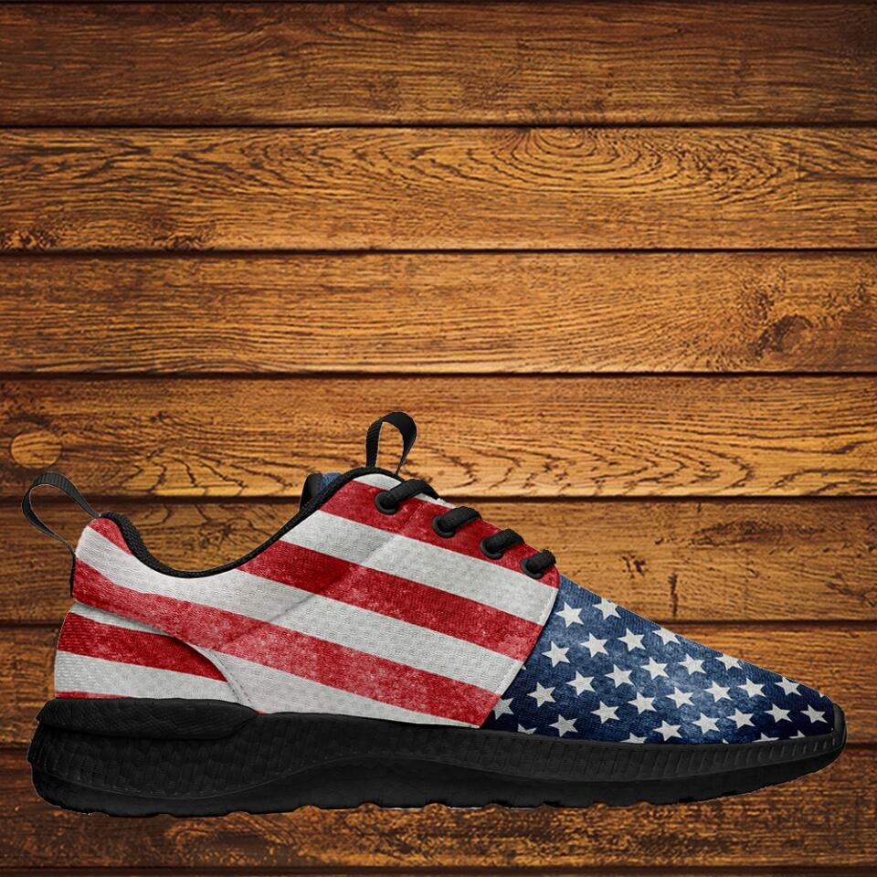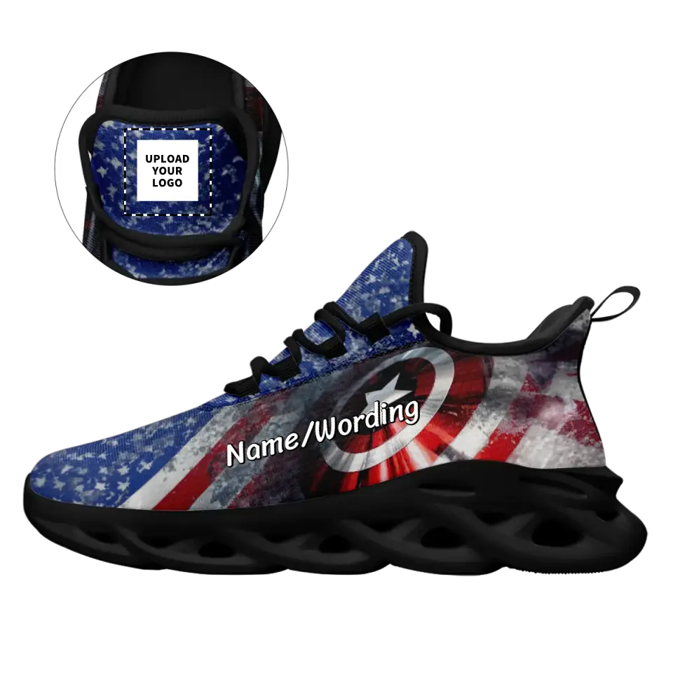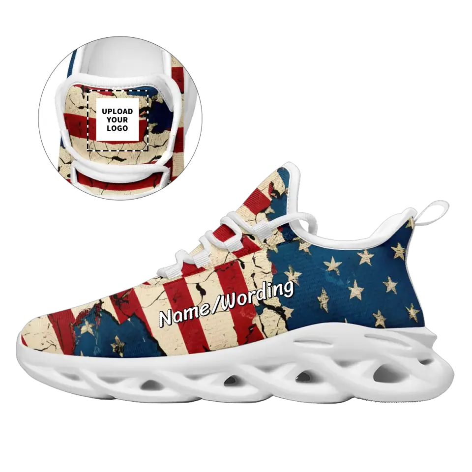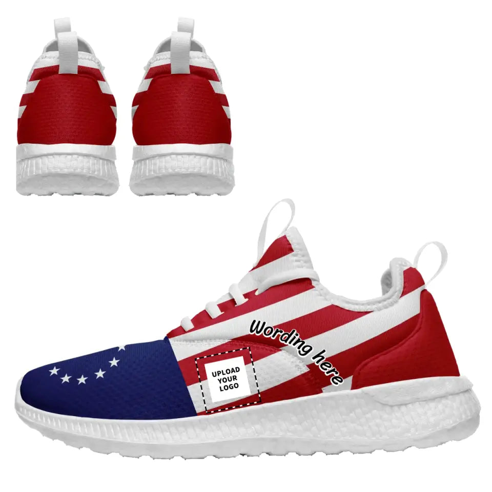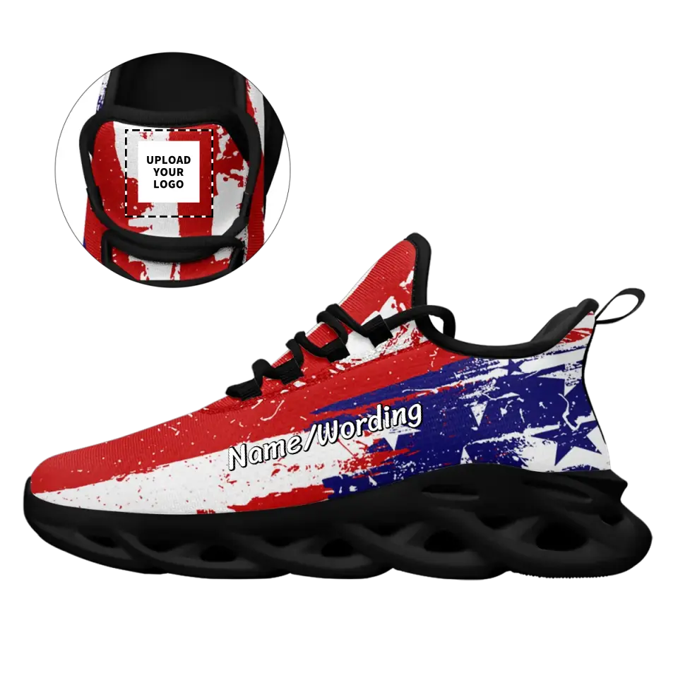 Custom US Patriotic Sneakers | USA Flag Running Shoes with Personalized Name, Logo, Brand Name | For Corporate Gift, Business Gift | MaxSoul-B03013