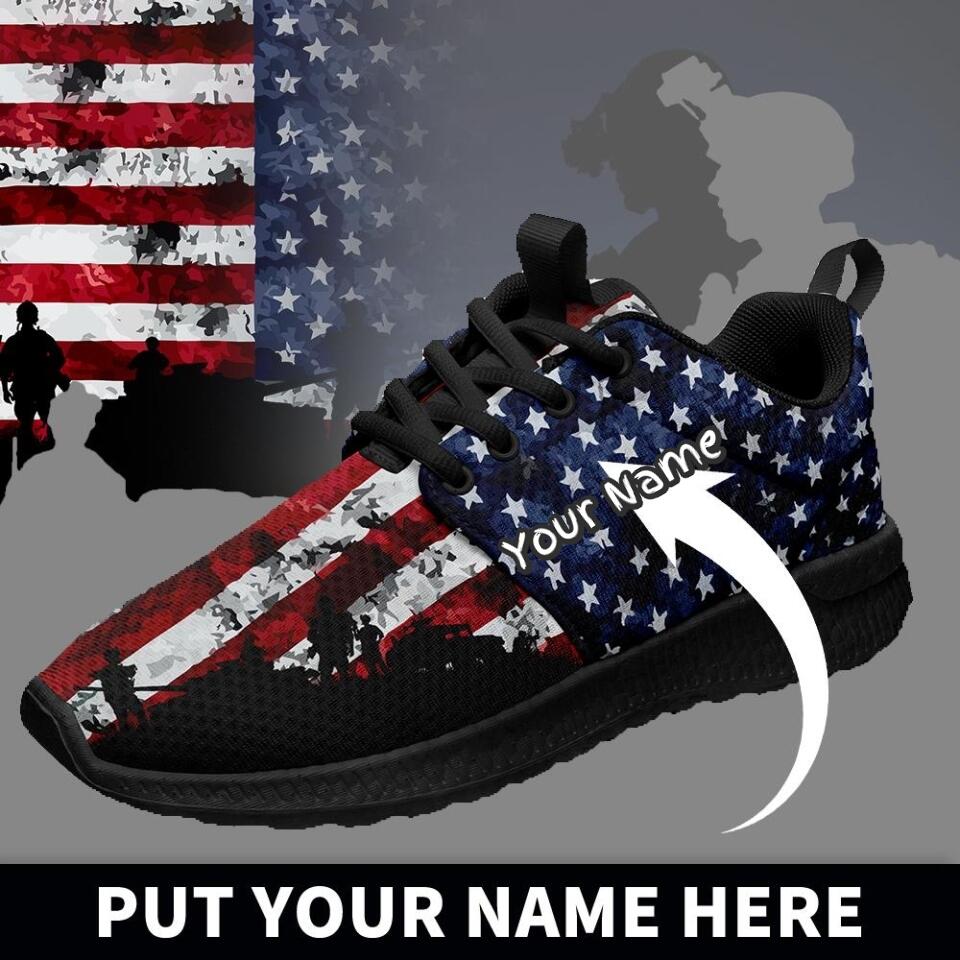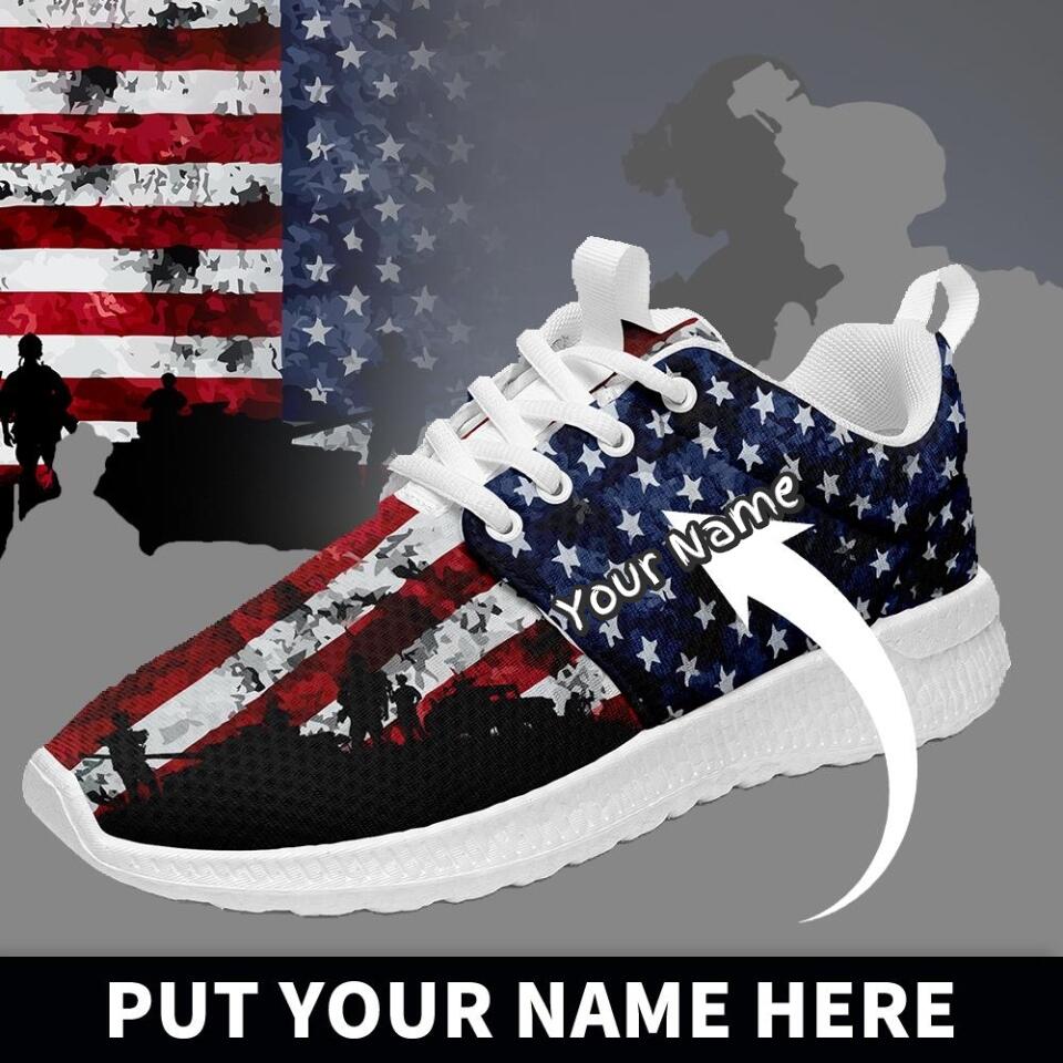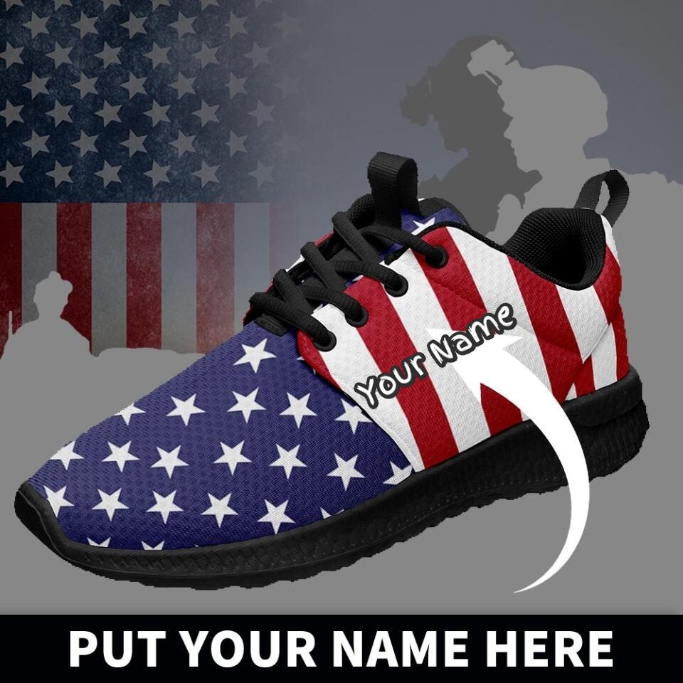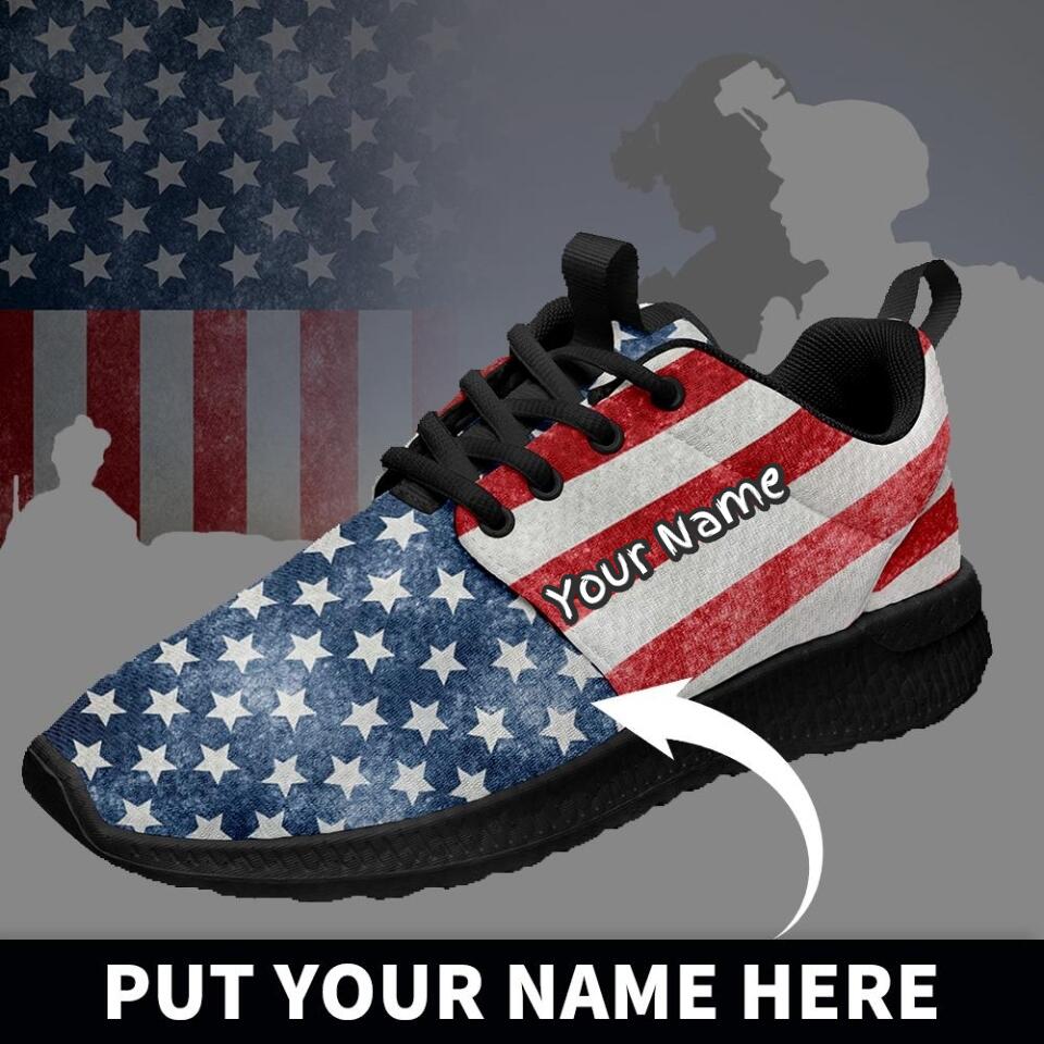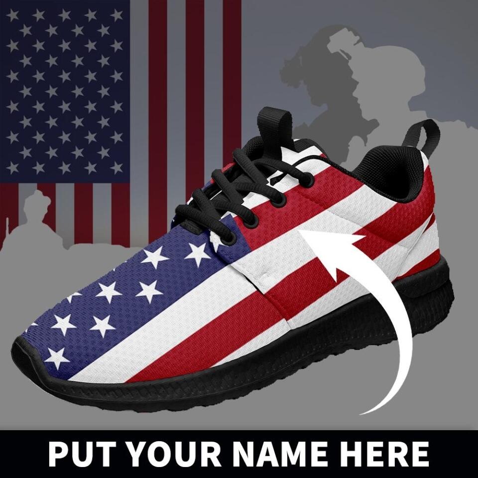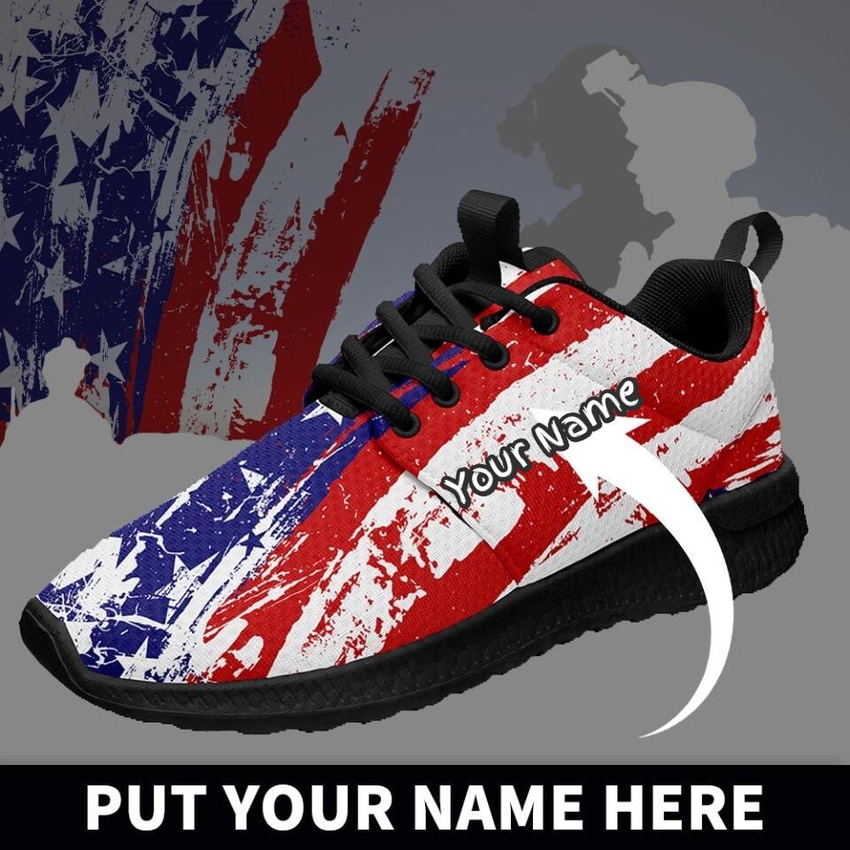 Custom US Patriotic Sneakers | USA Flag Running Shoes with Personalized Name, Logo, Brand Name | For Corporate Gift, Business Gift | MaxSoul-B03013