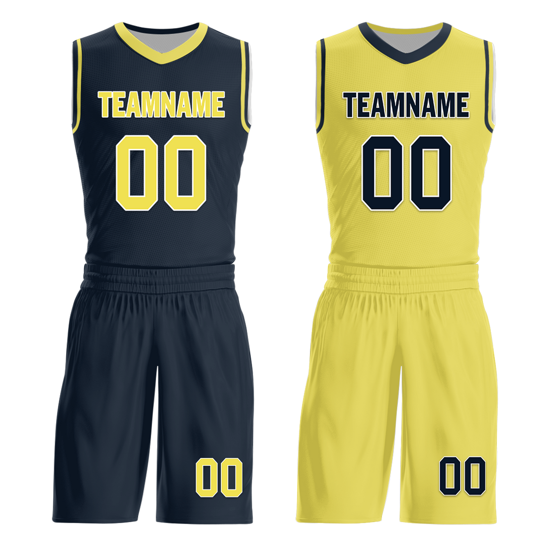 Corporate Gifts,Custom Blue Yellow Classic Style Reversible Basketball Uniform Personalized BBJR-D017059