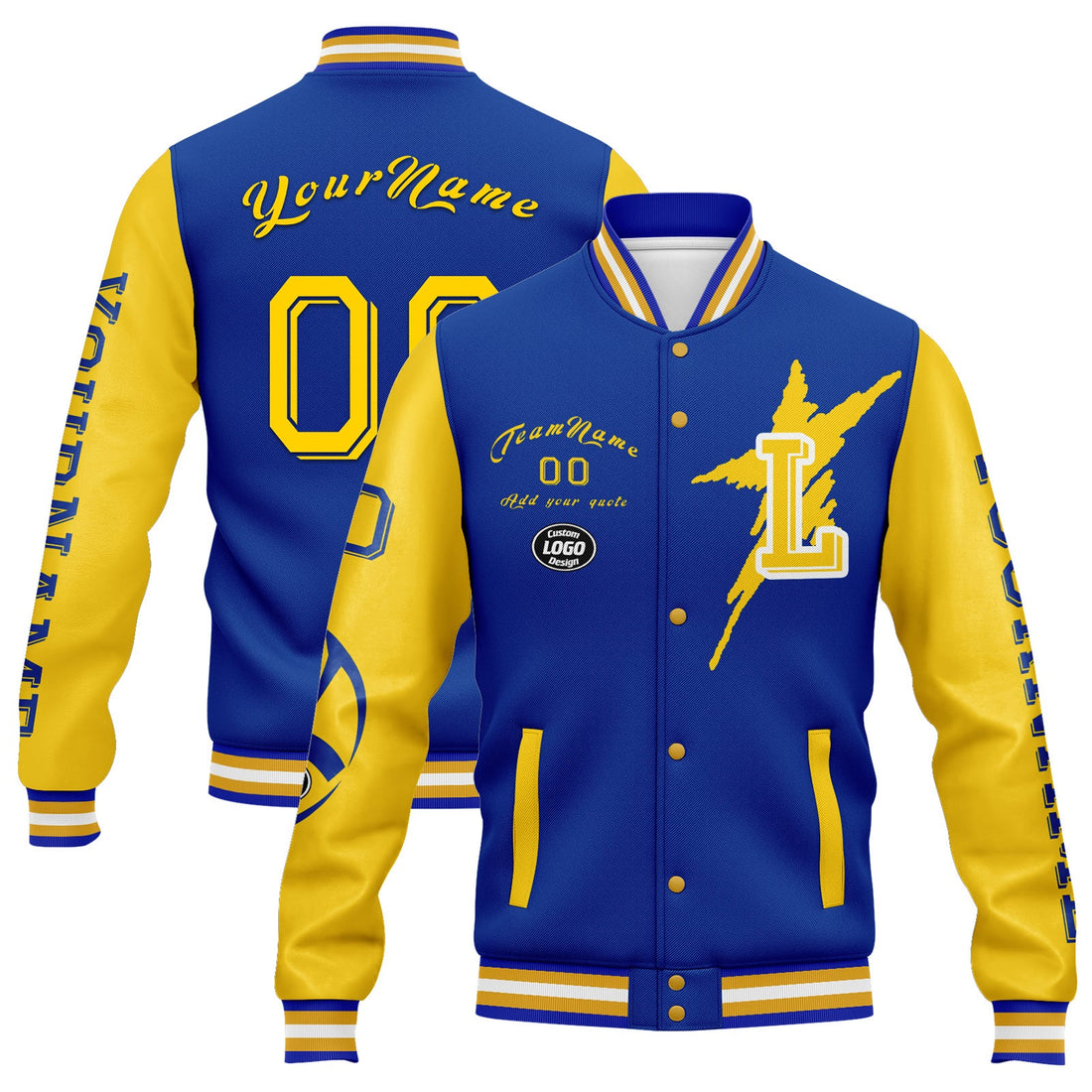 Corporate Gifts,Custom Blue Yellow Los Angeles Jacket Bomber Full-Snap Varsity Letterman Personalized Jacket FZ005SX-D020290-15