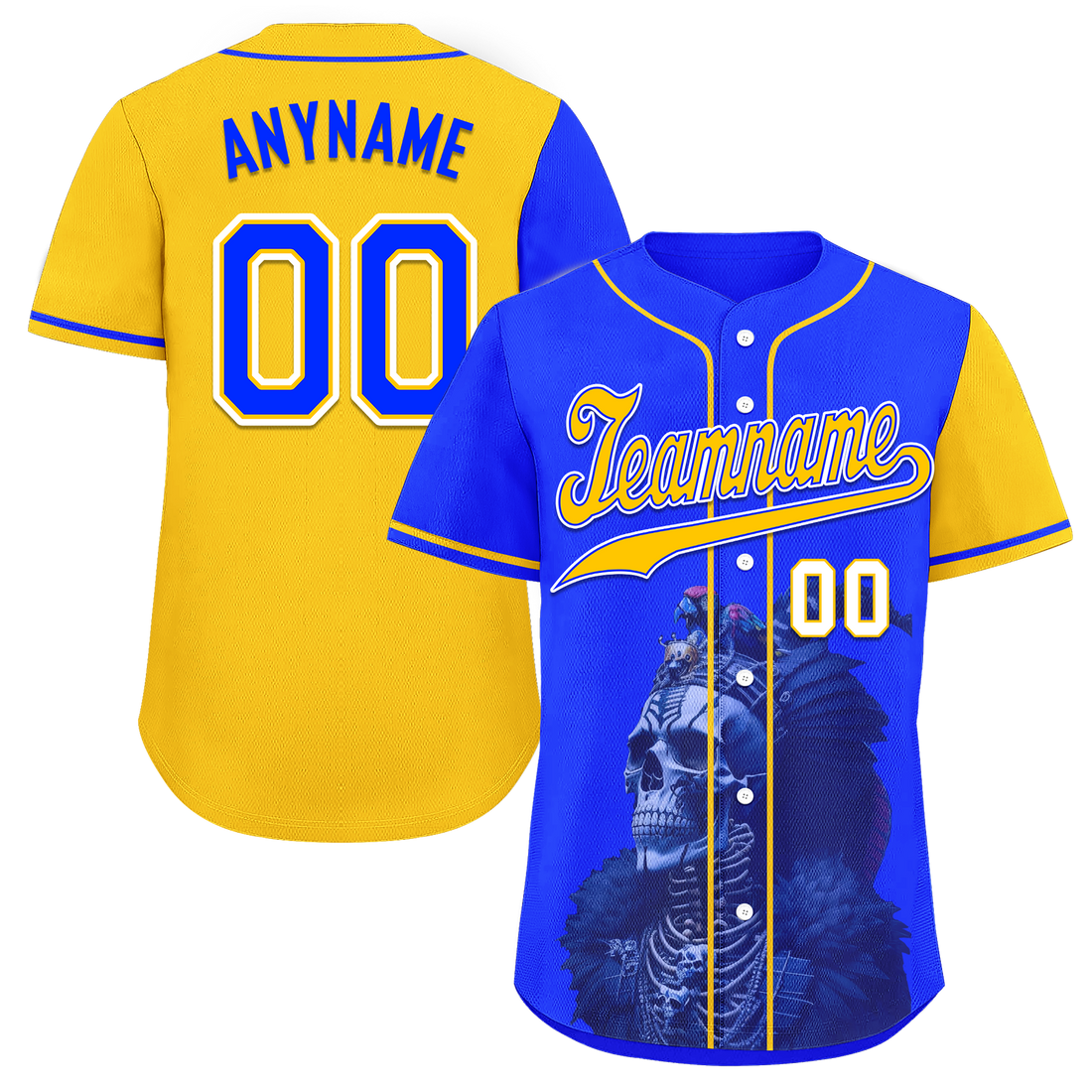 Corporate Gifts,Custom Blue Yellow Skull Fashion Personalized Authentic Baseball Jersey BSBJ01-D017157