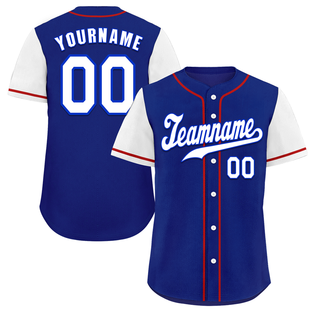 Corporate Gifts,Custom Blue White Raglan Sleeves White Authentic Baseball Jersey