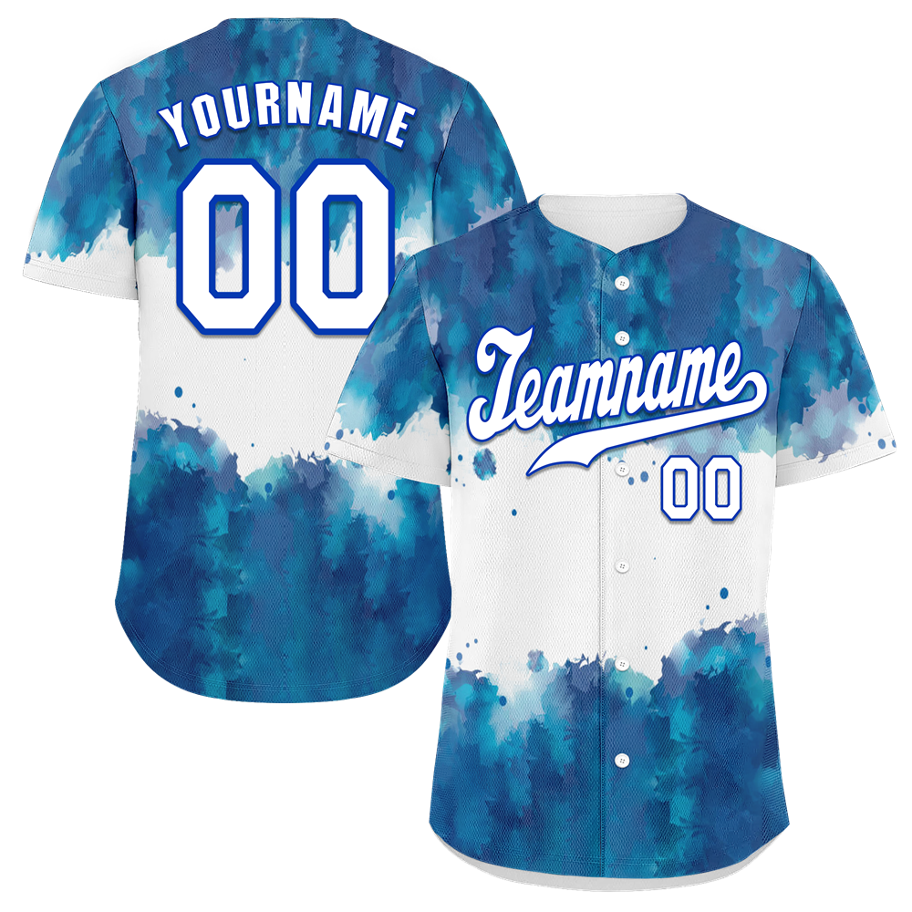 Corporate Gifts,Custom Blue White Tie Dye White Authentic Baseball Jersey BSBJ0a-bc0fbe7