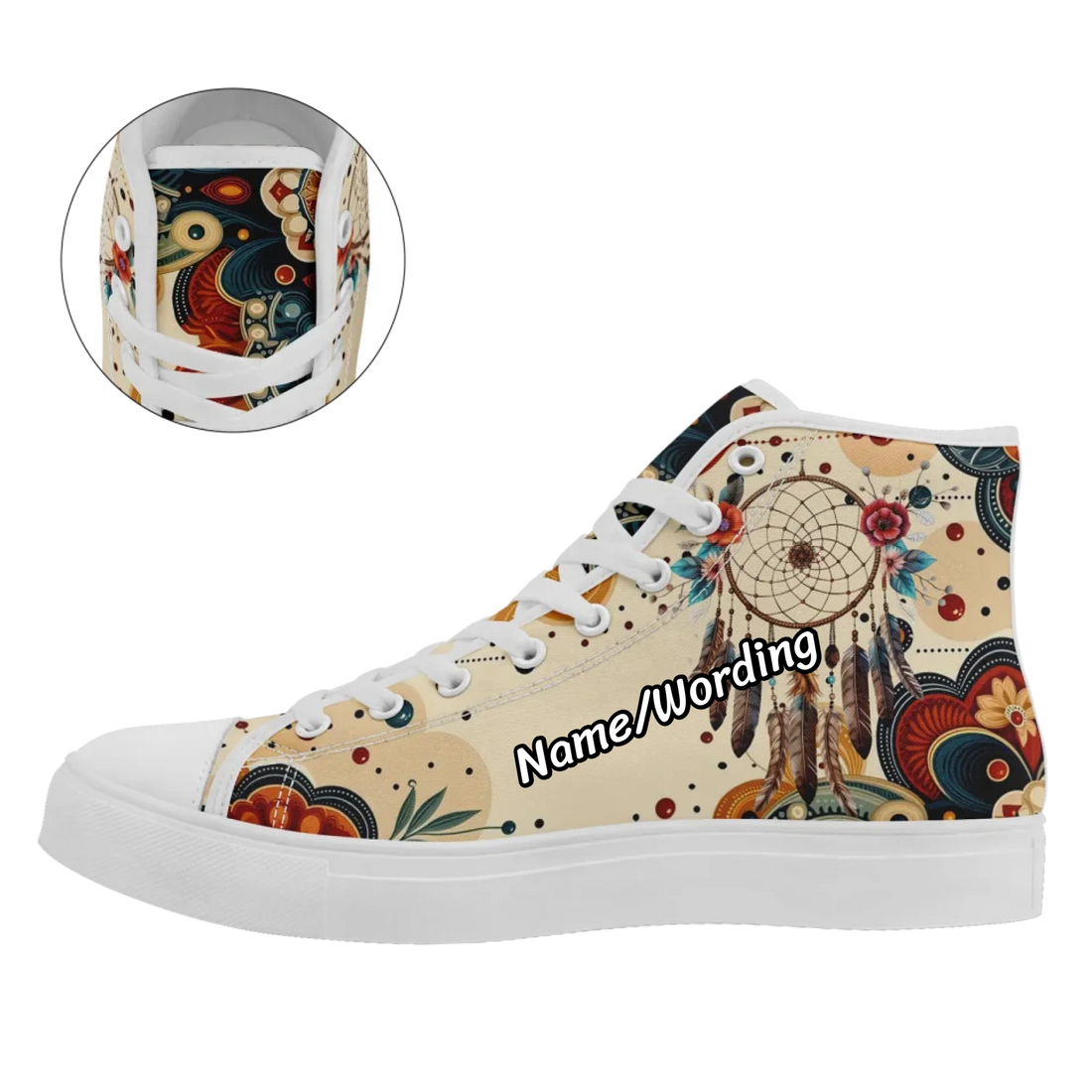 Bohemian Dreamcatcher High-Top Sneakers, Boho Chic Feather Art Print Festival Shoes FN024-25025128