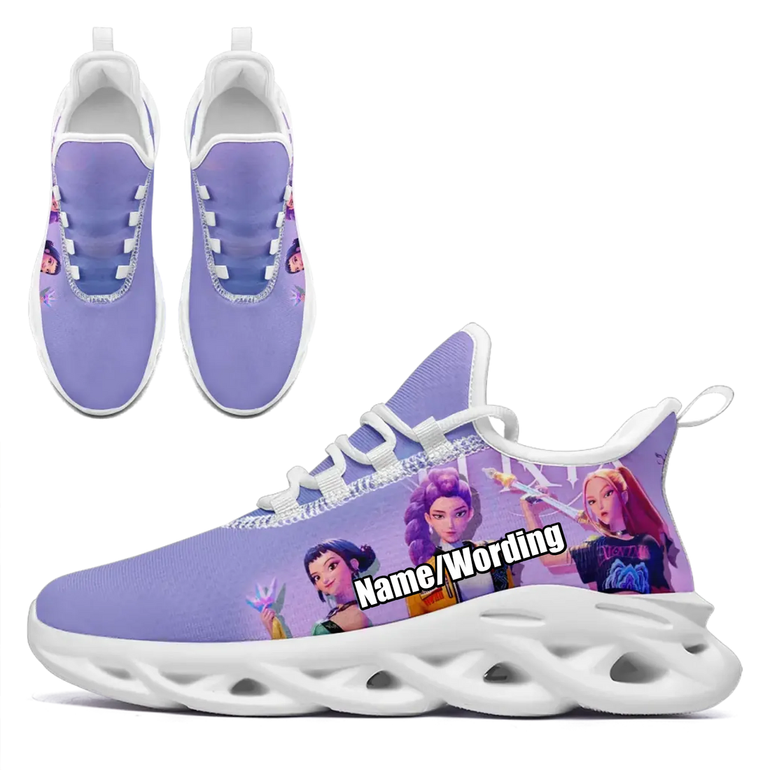 "Demon Huntress" K-Pop Girl Group Idol Athletic Sneakers, Purple Character Print Trainers FN003-25025129