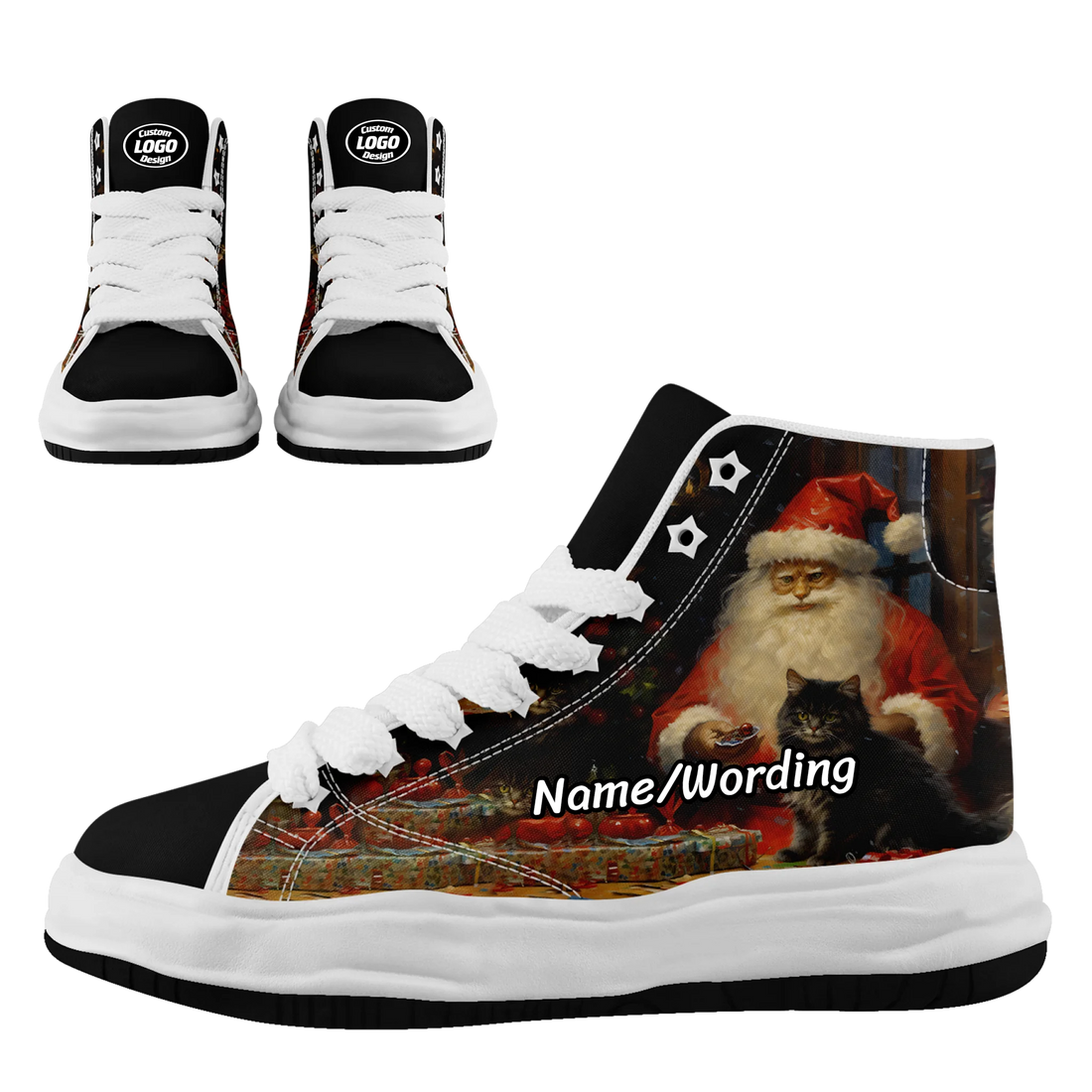 Classic Christmas Art High-Tops - Santa Claus & His Cat Vintage Painting Sneakers FN039-25025117
