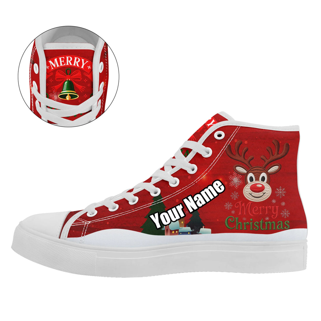 Christmas Reindeer High-Top Sneakers, Festive Red Cartoon Canvas Shoes for Holiday Parties FN024-250633