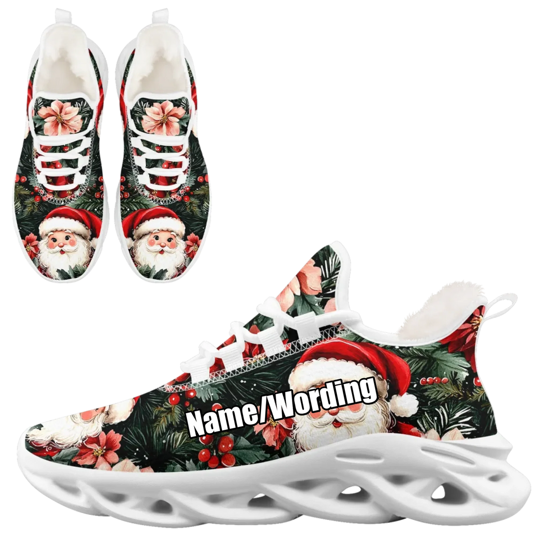 Classic Santa Claus & Poinsettia Christmas Athletic Sneakers, Festive Winter Floral Trainers FN003A-25023166