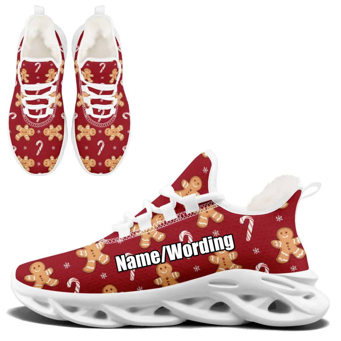 Christmas Gingerbread Man & Candy Cane Athletic Sneakers, Festive Holiday Fun Run Shoes FN003A-25009047