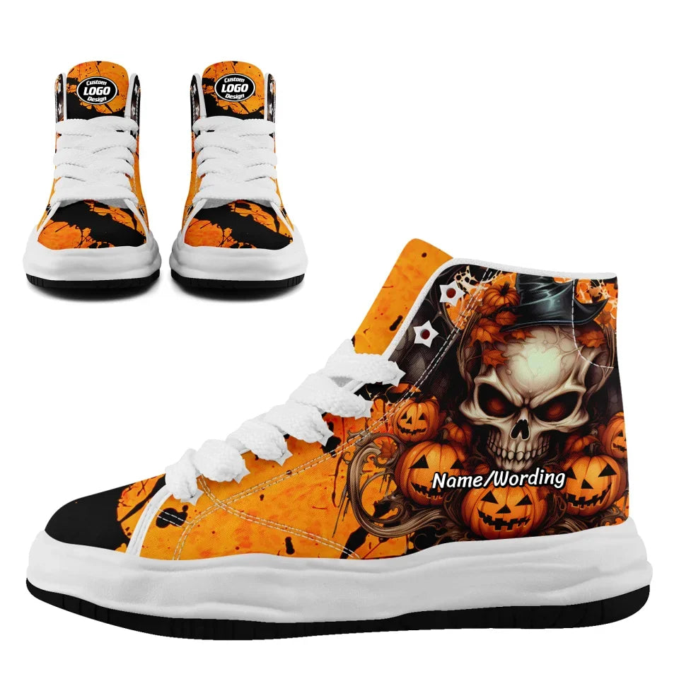 Corporate Gifts,Personalized Bat Design Sneakers, Custom Pumpkin,Skull Shoes, Unisex Canvas High Top Shoes
