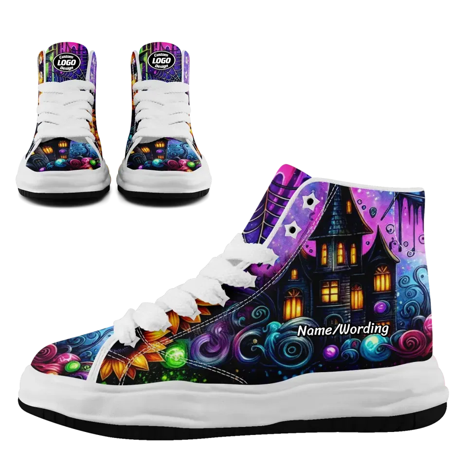 Corporate Gifts,Personalized Bat Sneakers, Custom Pumpkin Shoes, Durable Canvas Higi Top Gym Shoes, Walking Shoes