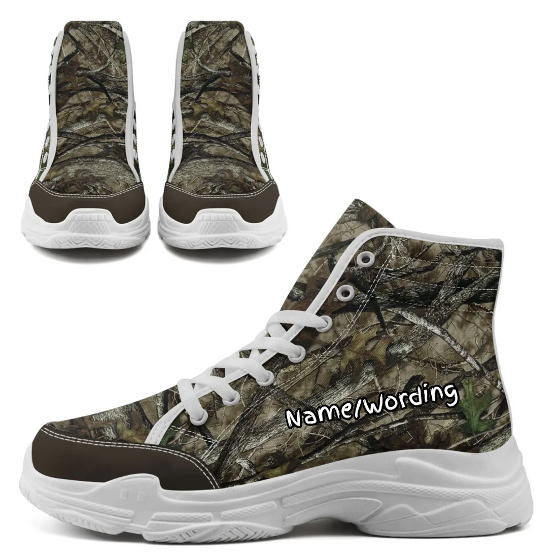 Realistic Forest Camo Chunky High-Top Sneakers, Hunting Style Streetwear Shoes FN033-25020209