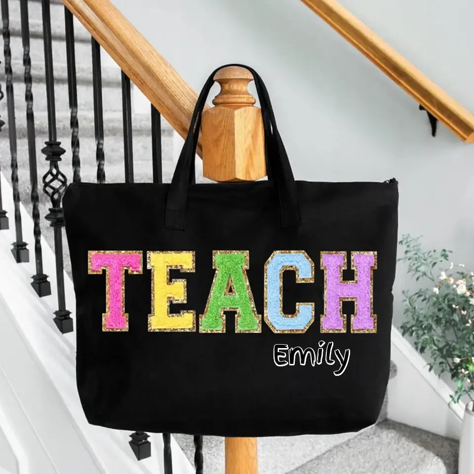 Christmas gift ideas employees, Custom Corporate Gifts Chenille Patch Teacher Tote Bag, Teacher Appreciation Gift Ideas for Teacher End of Year, Personalized Embroidered Custom Teacher Bag, Bags-C05100