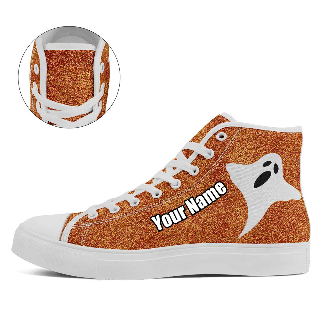 Spooky Ghost Halloween High-Top Sneakers, Orange Glitter Pumpkin Themed Party Shoes FN024-25020173