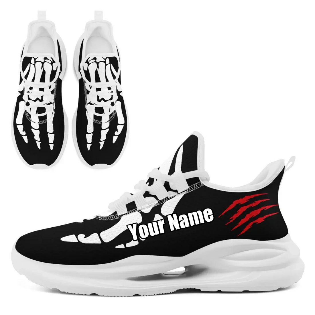 Skeleton Hand & Monster Claw Marks Athletic Sneakers, Black & Red Street Goth Trainers FN079-25028145