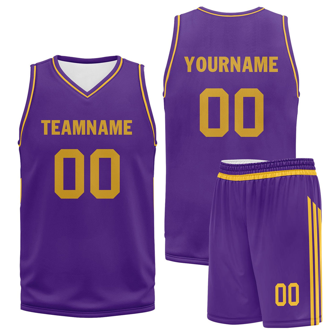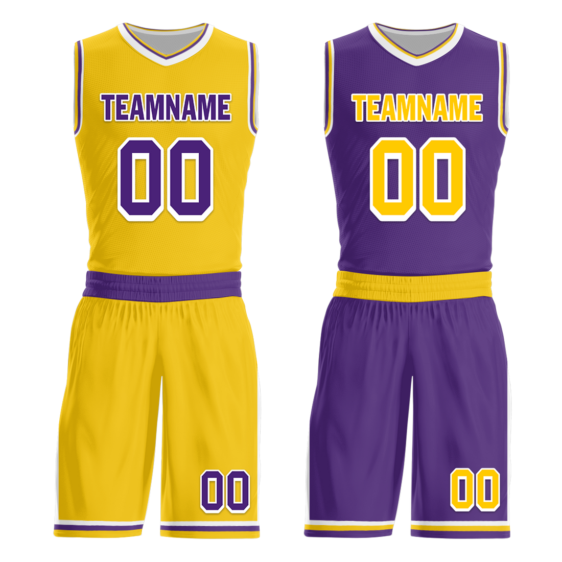 Gift Ideas,Custom Yellow Purple Classic Style Reversible Basketball Uniform Personalized BBJR-D017034