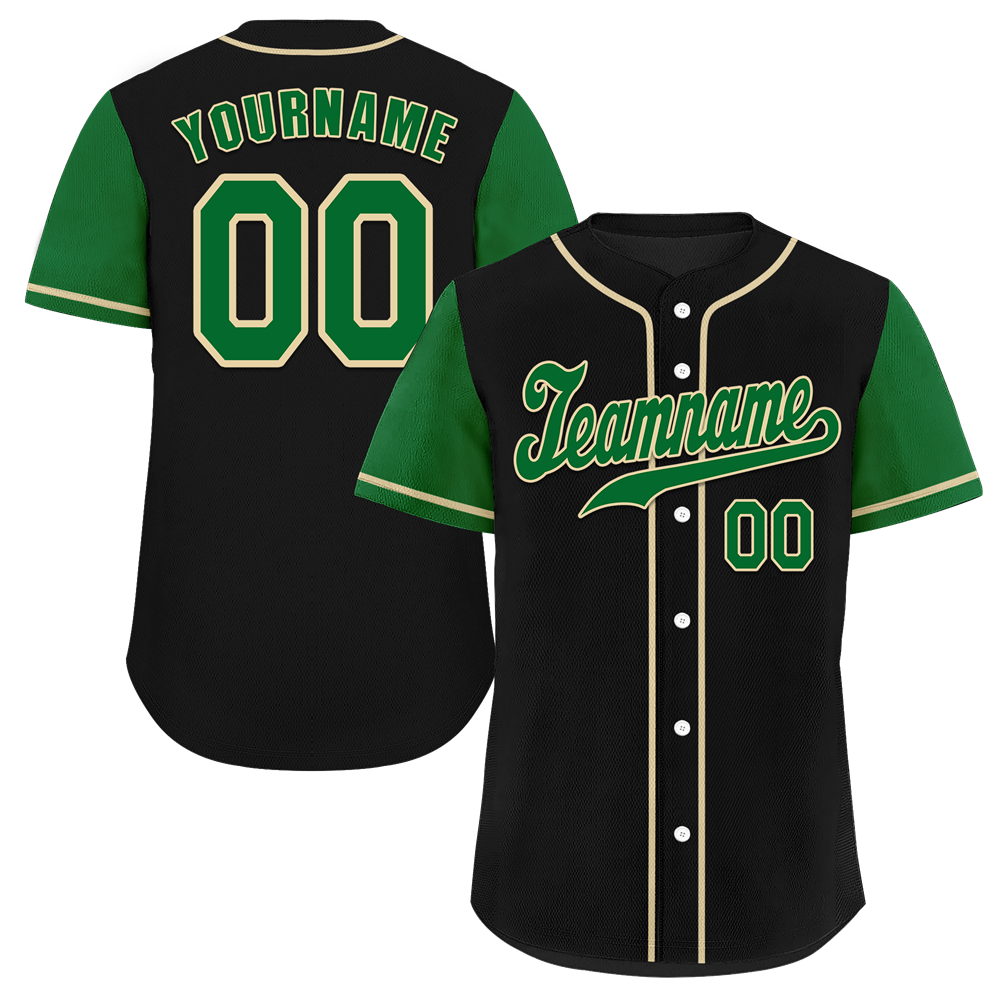 Corporate Gifts,Custom Black Green Raglan Sleeves Green Authentic Baseball Jersey