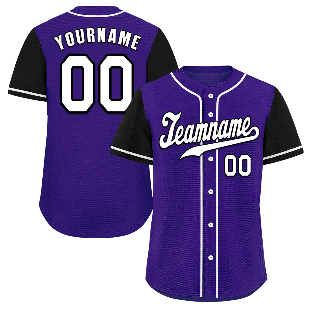 Corporate Gifts,Custom Purple Black Raglan Sleeves White Authentic Baseball Jersey