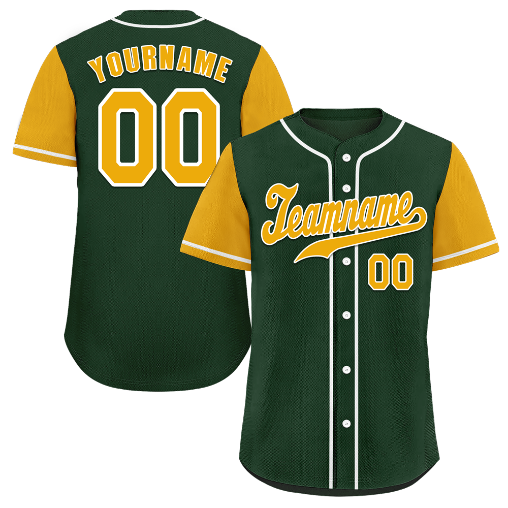 Corporate Gifts,Custom Green Yellow Raglan Sleeves Yellow Authentic Baseball Jersey