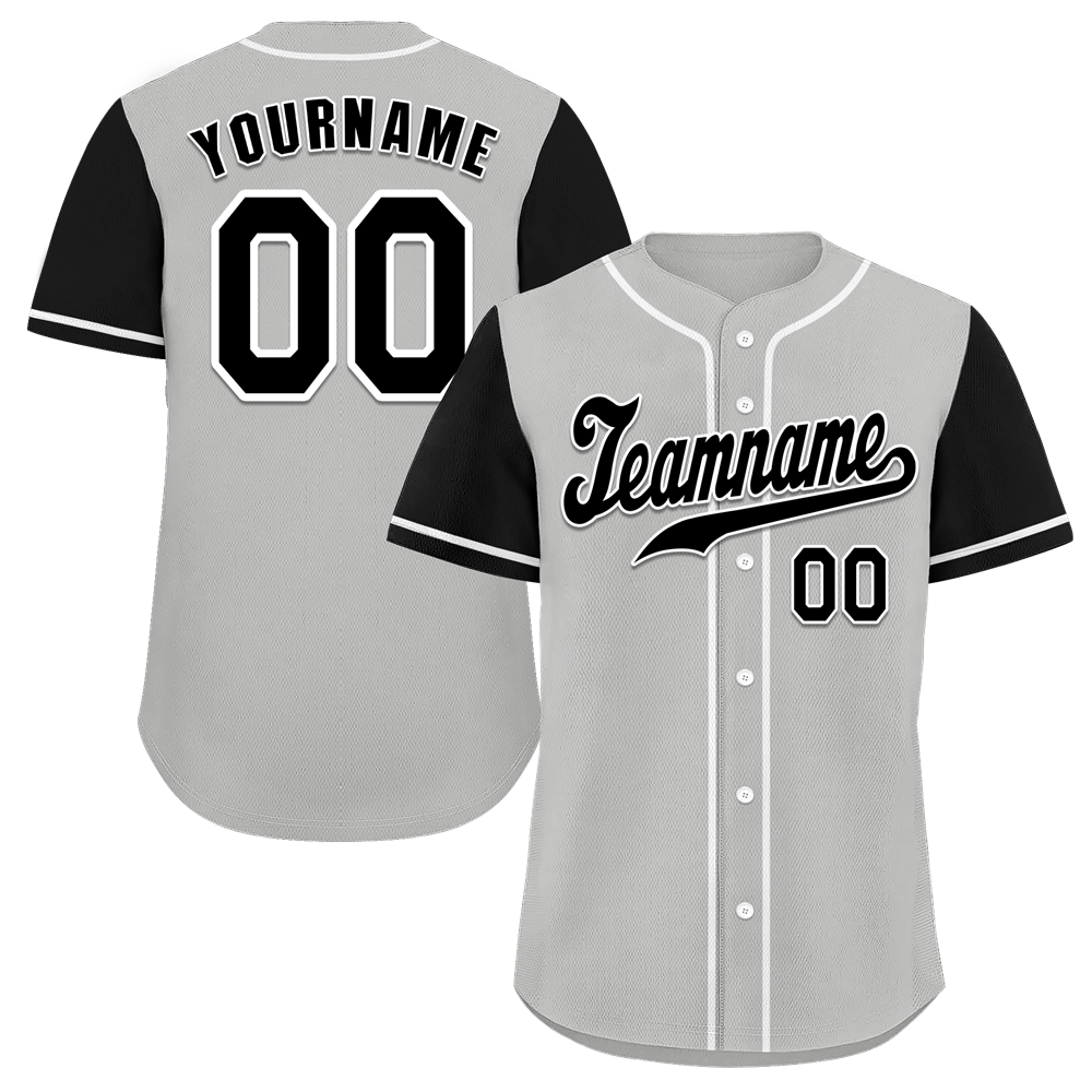 Corporate Gifts,Custom Grey Black Raglan Sleeves Black Authentic Baseball Jersey