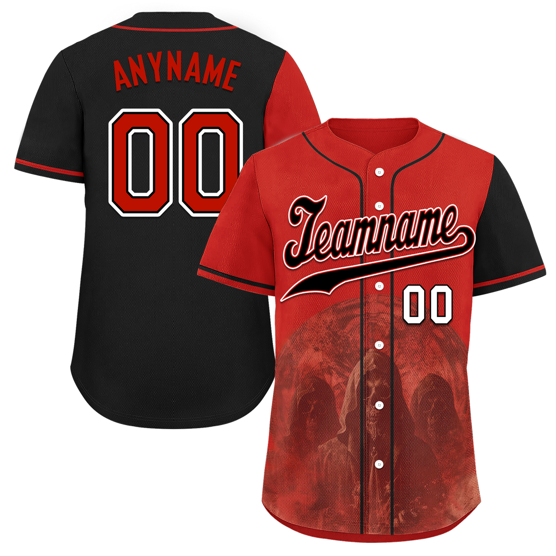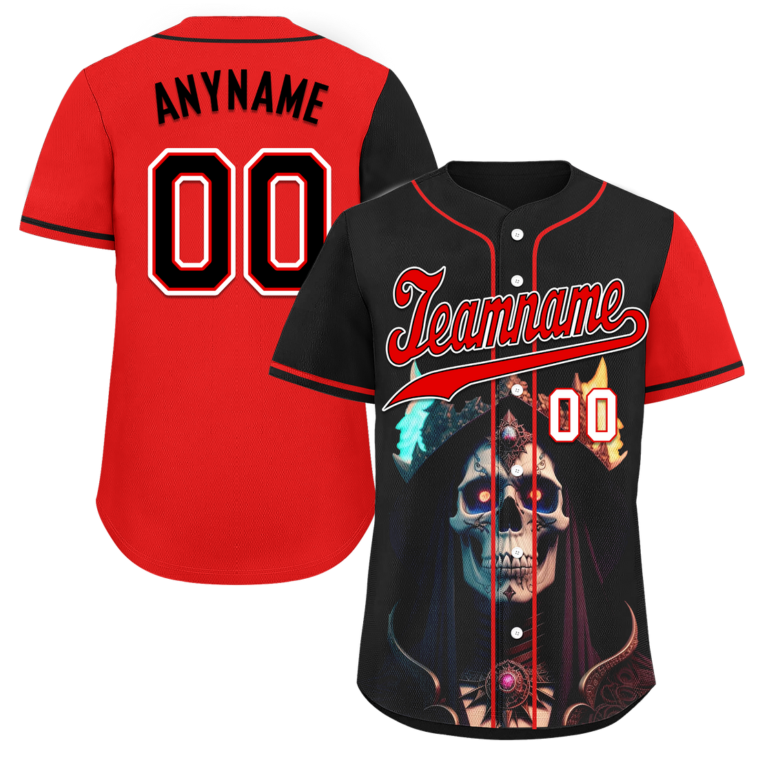 Corporate Gifts,Custom Red Black Skull Fashion Personalized Authentic Baseball Jersey BSBJ01-D017158