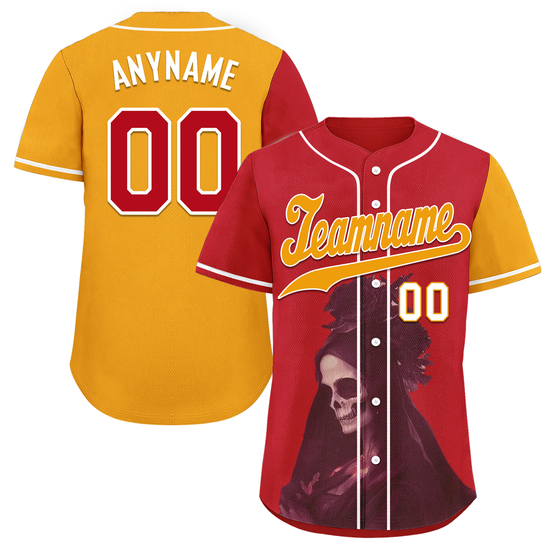 Corporate Gifts,Custom Red Yellow Skull Fashion Personalized Authentic Baseball Jersey BSBJ01-D017150