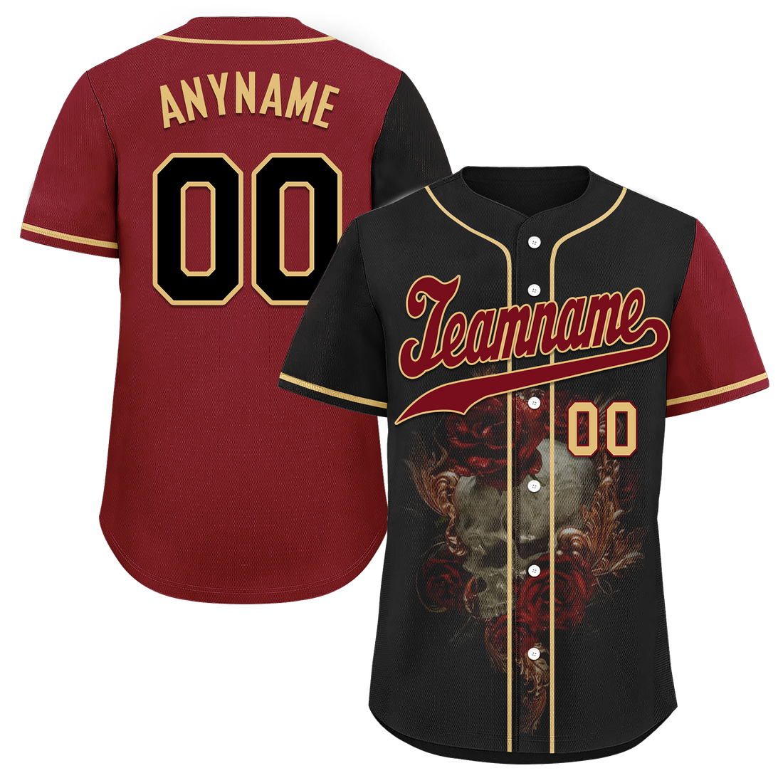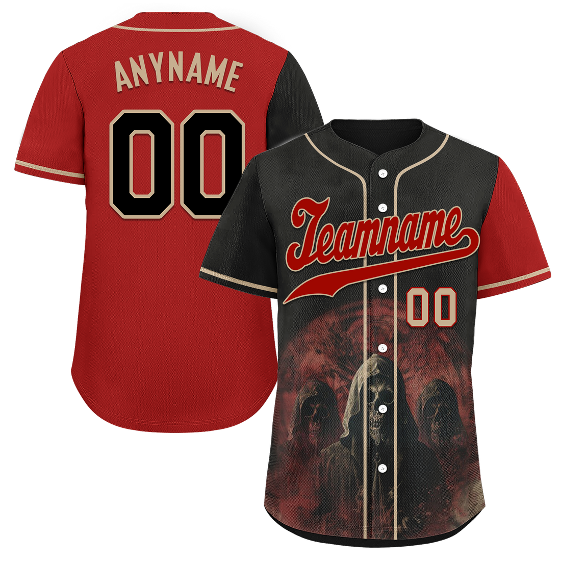 Corporate Gifts,Custom Black Red Skull Fashion Personalized Authentic Baseball Jersey BSBJ01-D017141