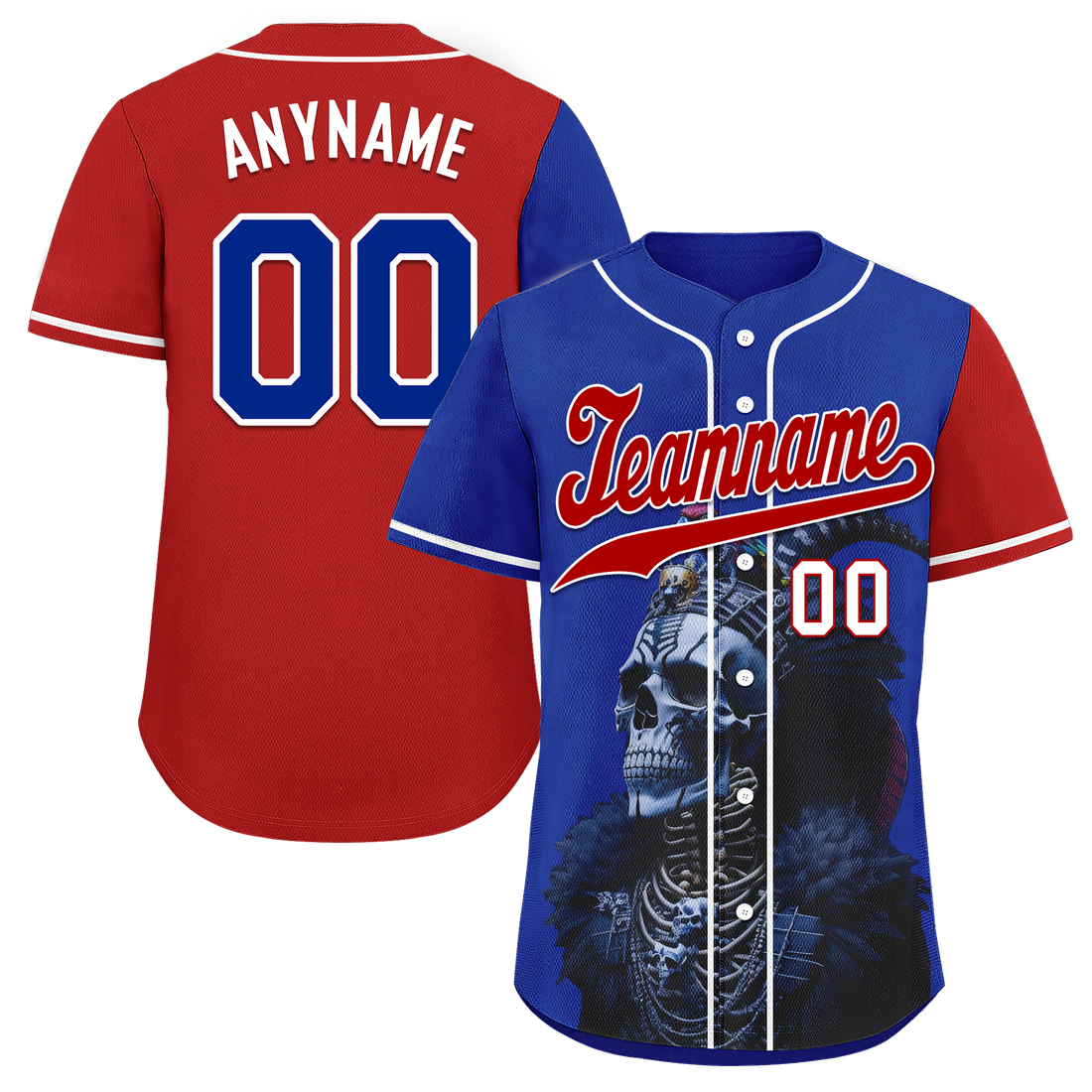 Corporate Gifts,Custom Blue Red Skull Fashion Personalized Authentic Baseball Jersey BSBJ01-D017146