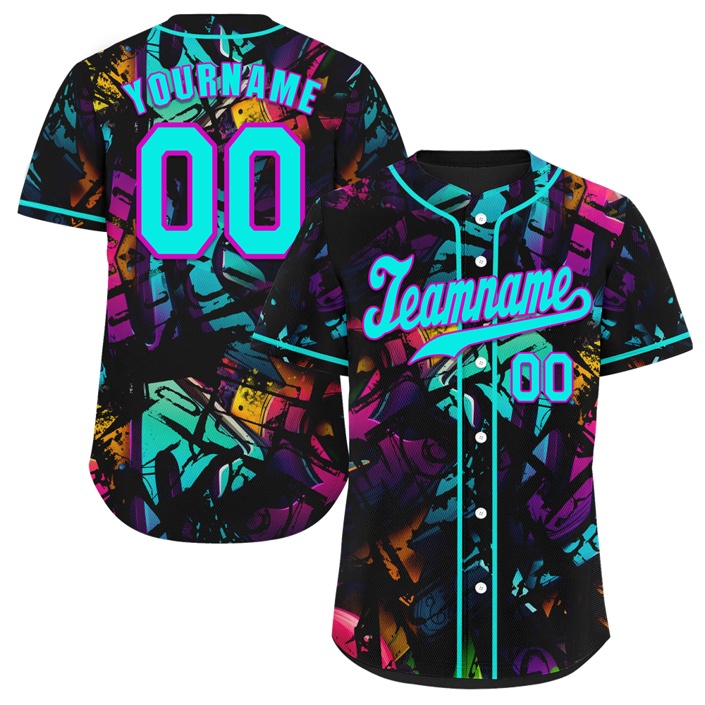 Corporate Gifts,Custom Colorful Graffiti Pattern Aqua Authentic Baseball Jersey