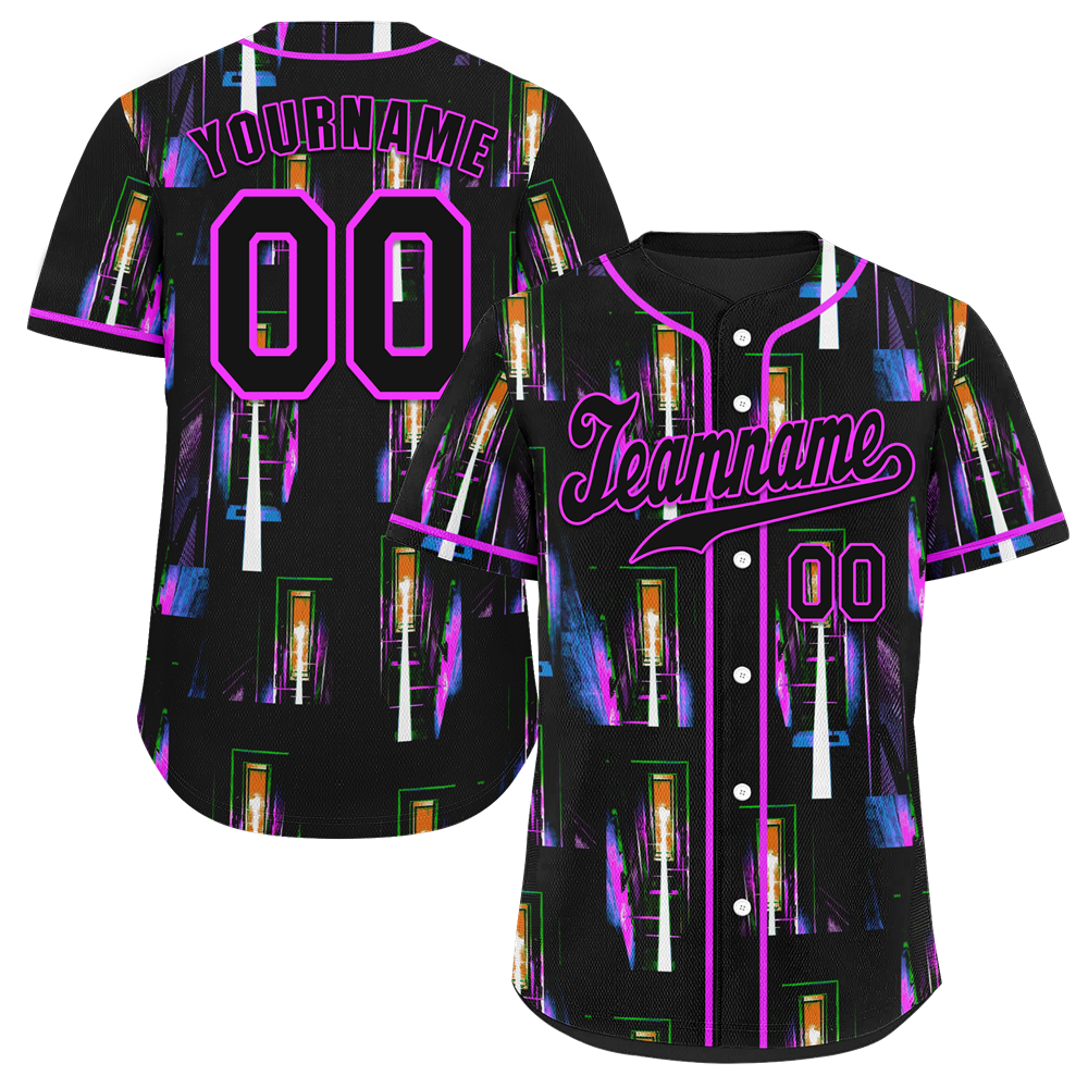 Corporate Gifts,Custom Colorful Graffiti Pattern Black Authentic Baseball Jersey