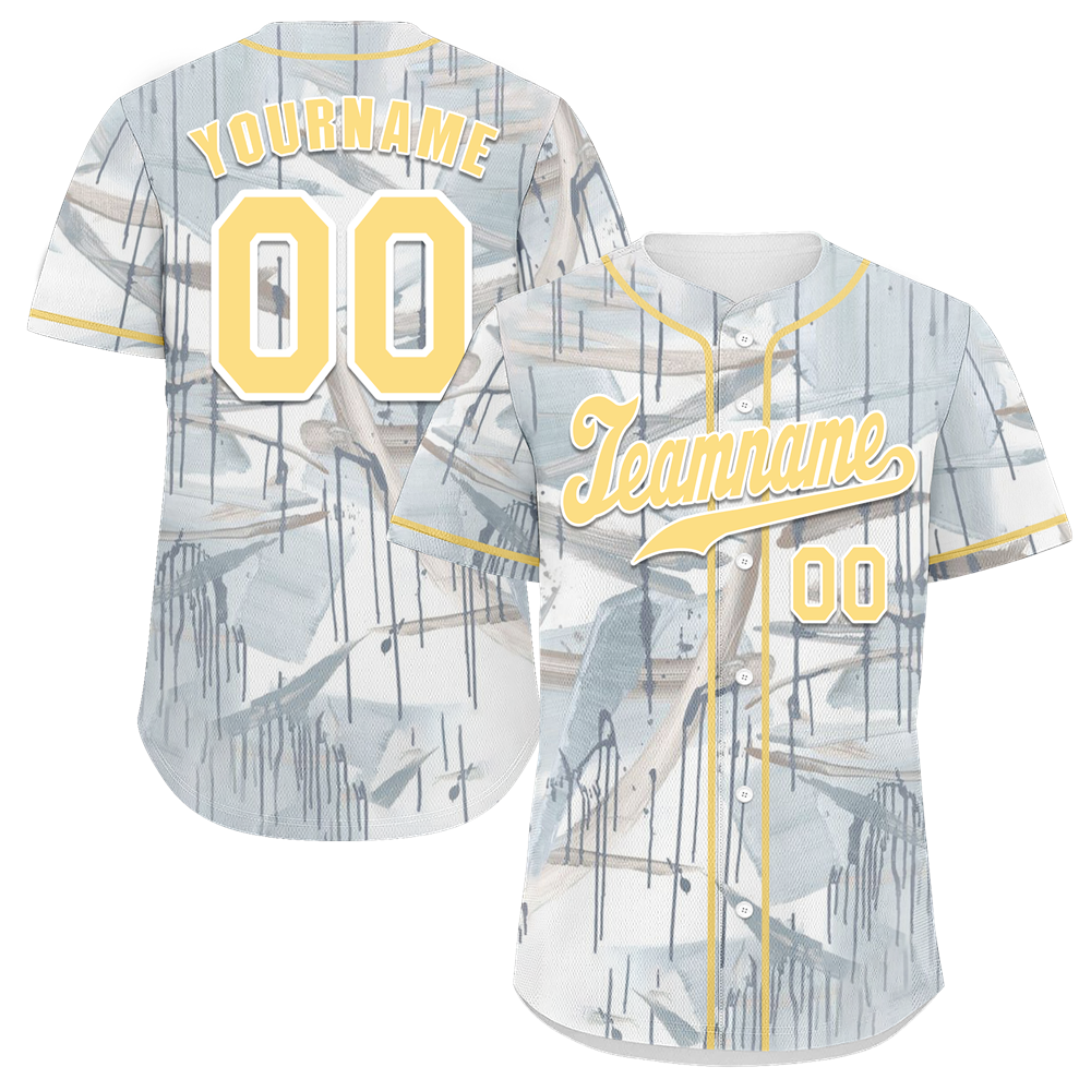 Corporate Gifts,Custom Grey Graffiti Pattern Yellow Authentic Baseball Jersey