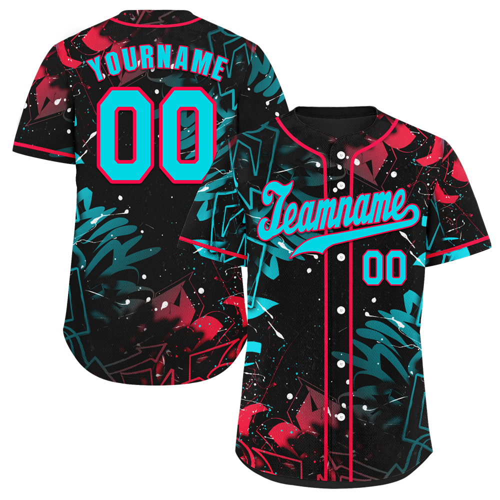 Corporate Gifts,Custom Colorful Graffiti Pattern Aqua Authentic Baseball Jersey
