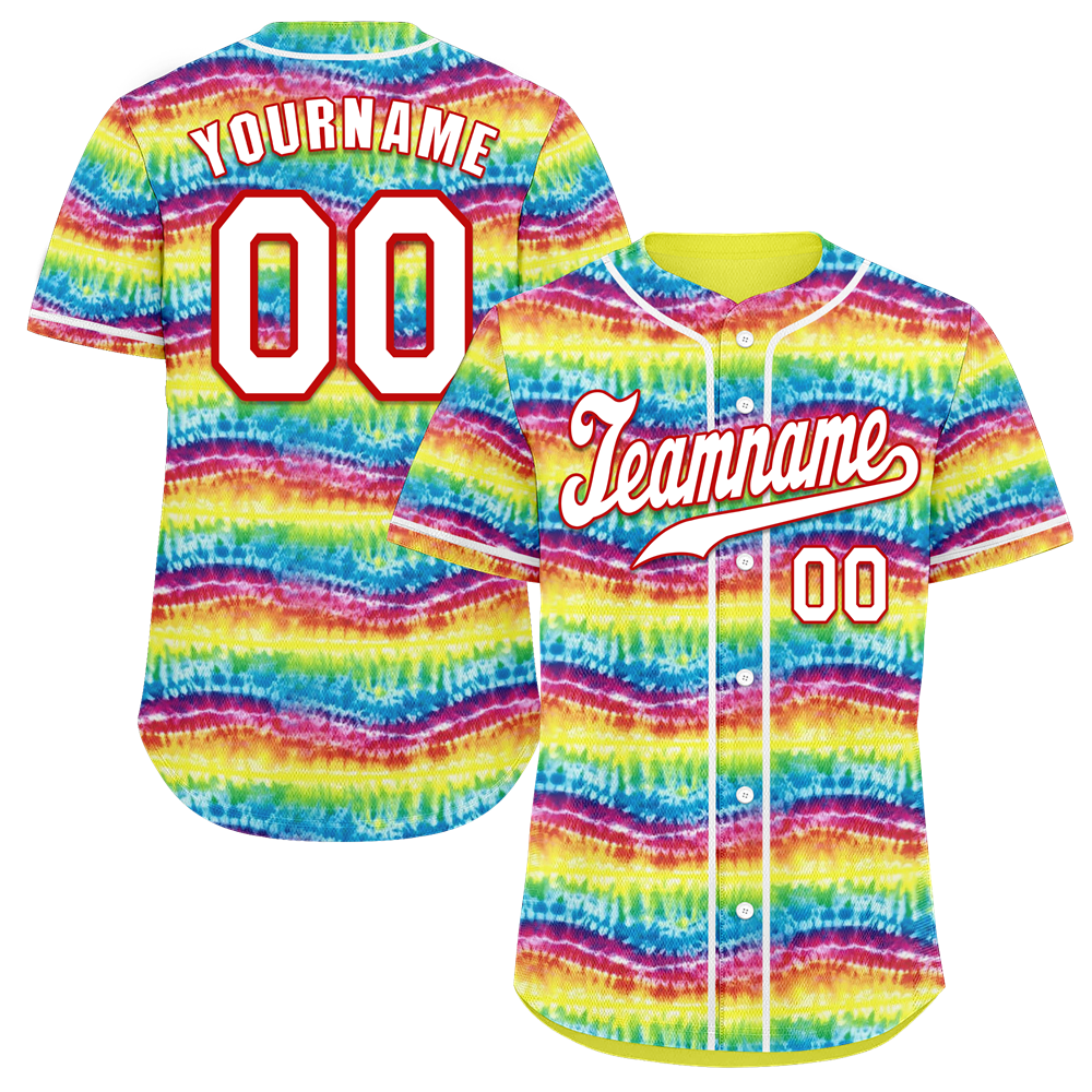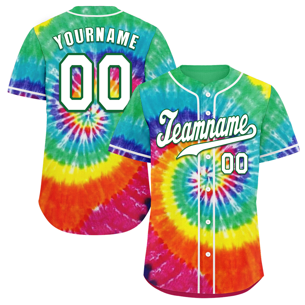 Corporate Gifts,Custom Red Green Tie Dye White Authentic Baseball Jersey BSBJ0a-bc0fbea