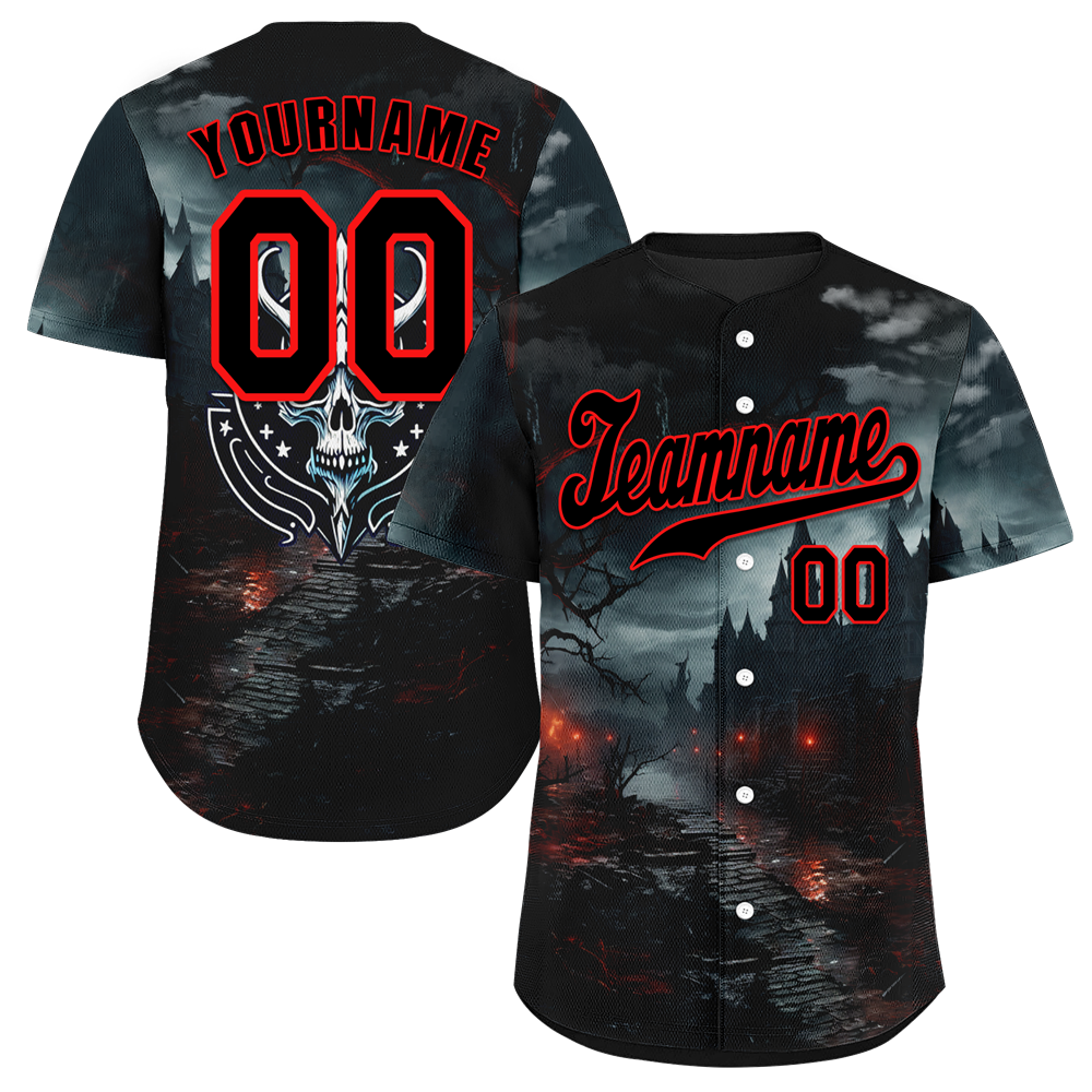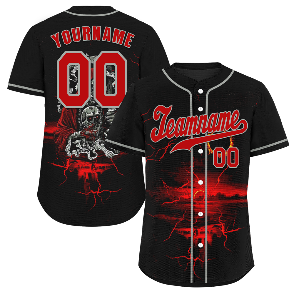 Corporate Gifts,Custom Black Red Skull Fashion Black Authentic Baseball Jersey BSBJ0a-bc0fb97