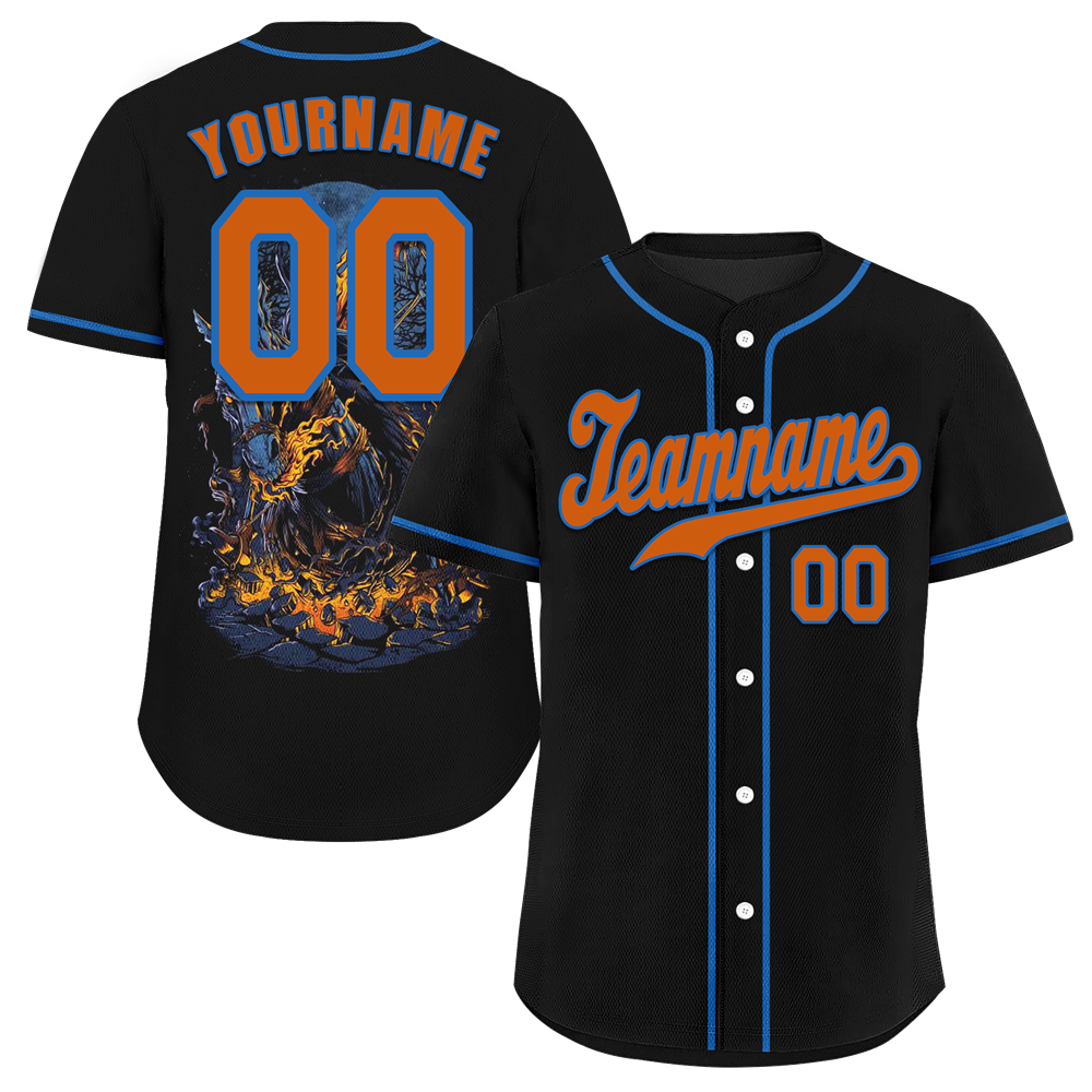 Corporate Gifts,Custom Black Skull Fashion Orange Authentic Baseball Jersey BSBJ0a-bc0fb9b