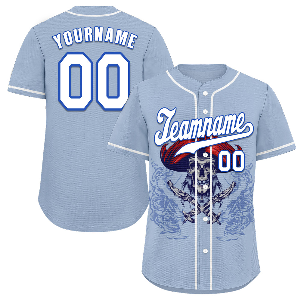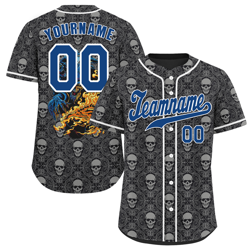 Corporate Gifts,Custom Grey Skull Fashion Blue Authentic Baseball Jersey BSBJ0a-bc0fb9f