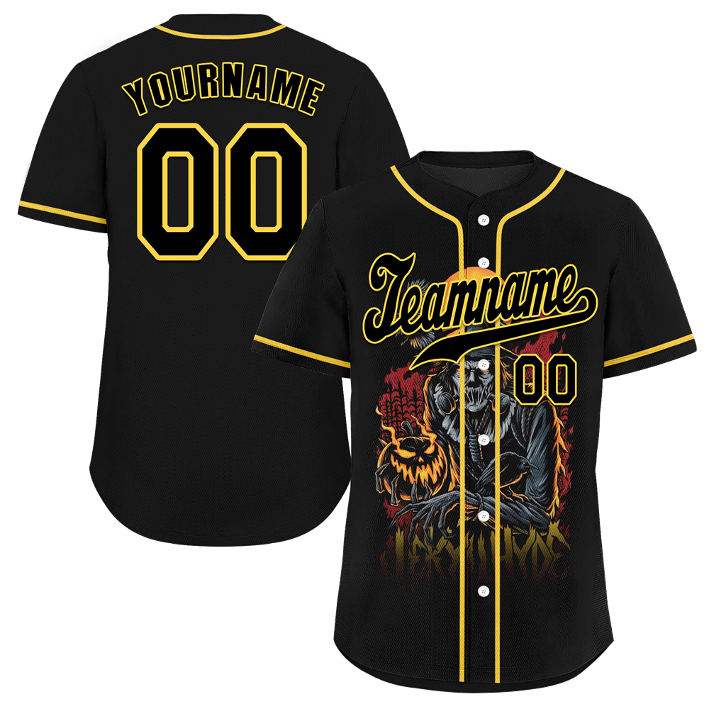 Corporate Gifts,Custom Black Yellow Skull Fashion Black Authentic Baseball Jersey BSBJ0a-bc0fb98
