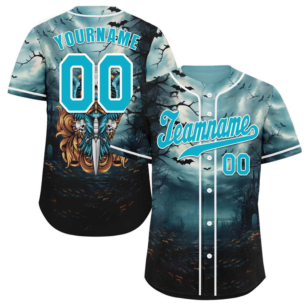 Corporate Gifts,Custom Aqua Black Skull Fashion Aqua Authentic Baseball Jersey BSBJ0a-bc0fb99