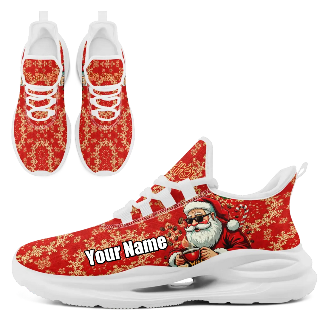 Festive Holiday Santa Athletic Sneakers, Cheerful Christmas Themed Fashion Trainers FN079-25018050
