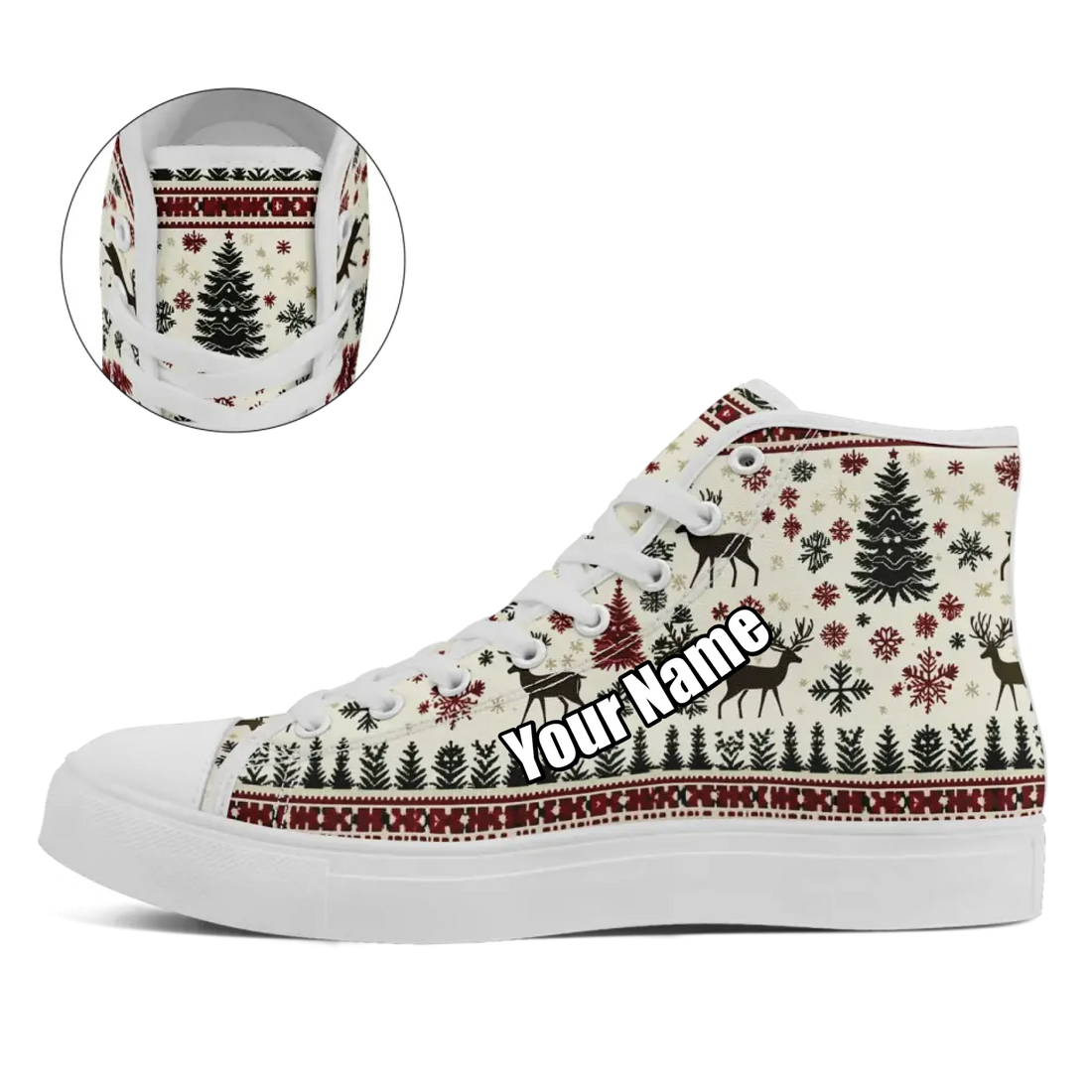 Christmas Sweater Pattern High-Top Sneakers, Festive Nordic Reindeer & Tree Shoes FN024-25018031