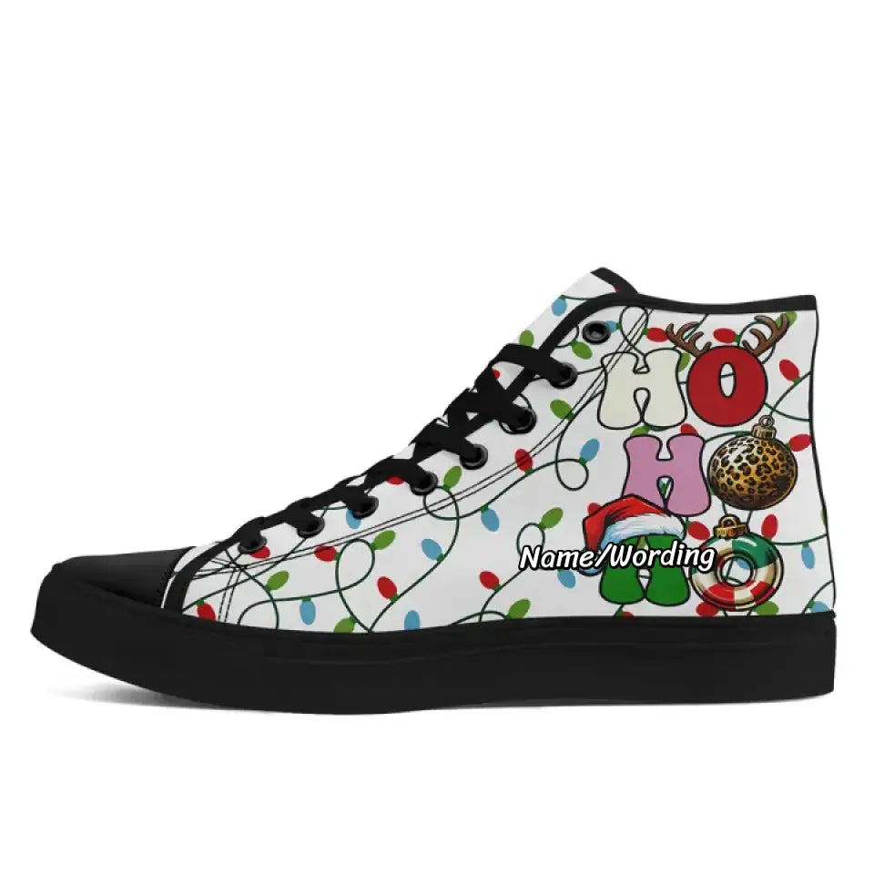 Corporate Gifts,Personalized Santa Sneakers, Custom Canvas High Top Shoes, Unisex Shoes for Christmas Gift