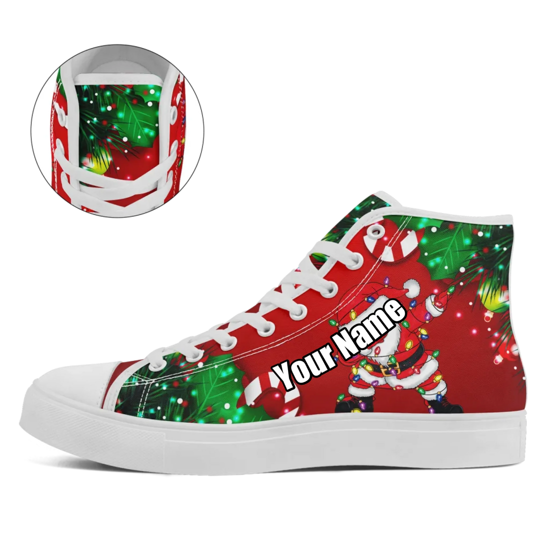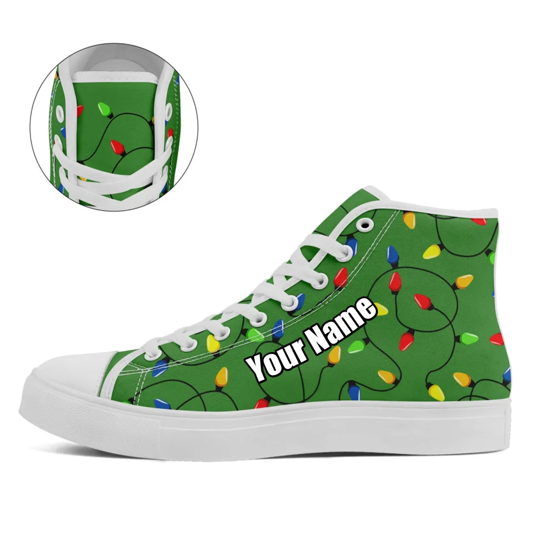 Festive Christmas Lights Print High-Top Sneakers, Bright & Colorful Holiday Shoes FN024-25018029