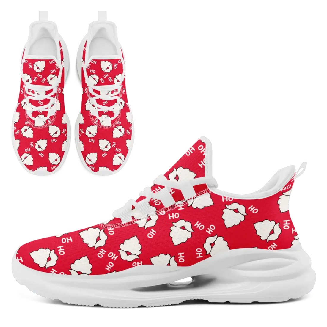 Funny Santa Beard Christmas Lightweight Sneakers, Holiday Party & Fun Run Athletic Shoes FN079-25027128