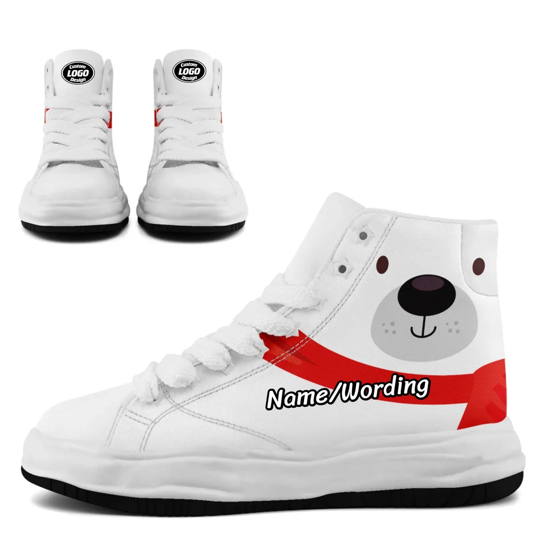 Cute Christmas Polar Bear High-Top Sneakers, Minimalist Winter Holiday White Shoes FN039-24020293